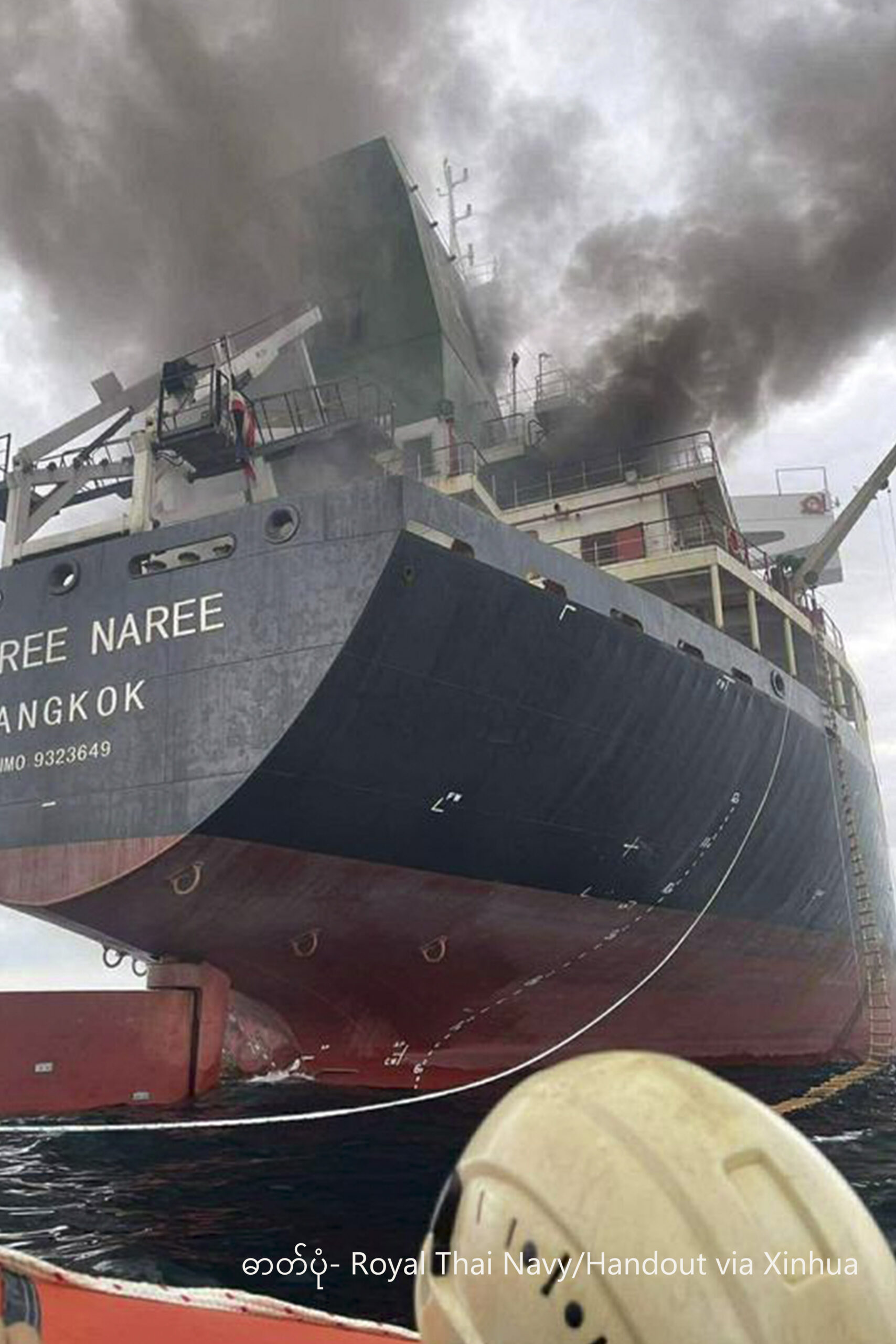 1. 这张泰国海军3月11日发布的照片显示,一艘泰国货船在霍尔木兹海峡海域遭袭起火新华社发(泰国海军供图)