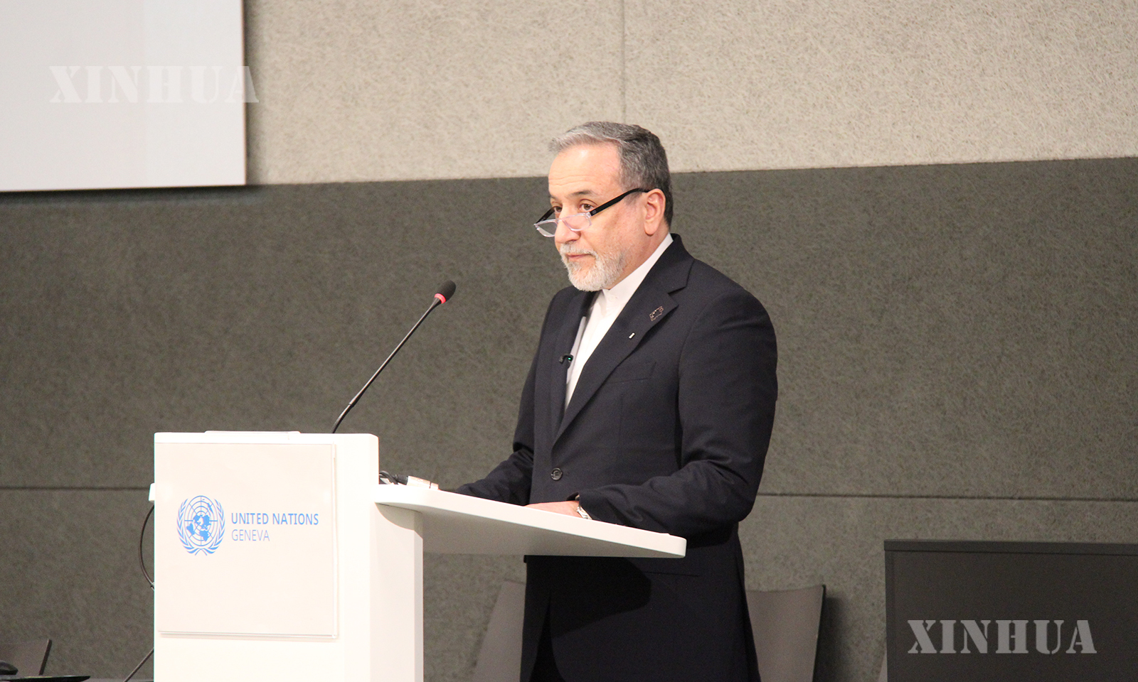 图说:2月17日,伊朗外交部长阿拉格齐在瑞士日内瓦万国宫举行的裁军谈判会议上发言。新华社记者 石松 摄