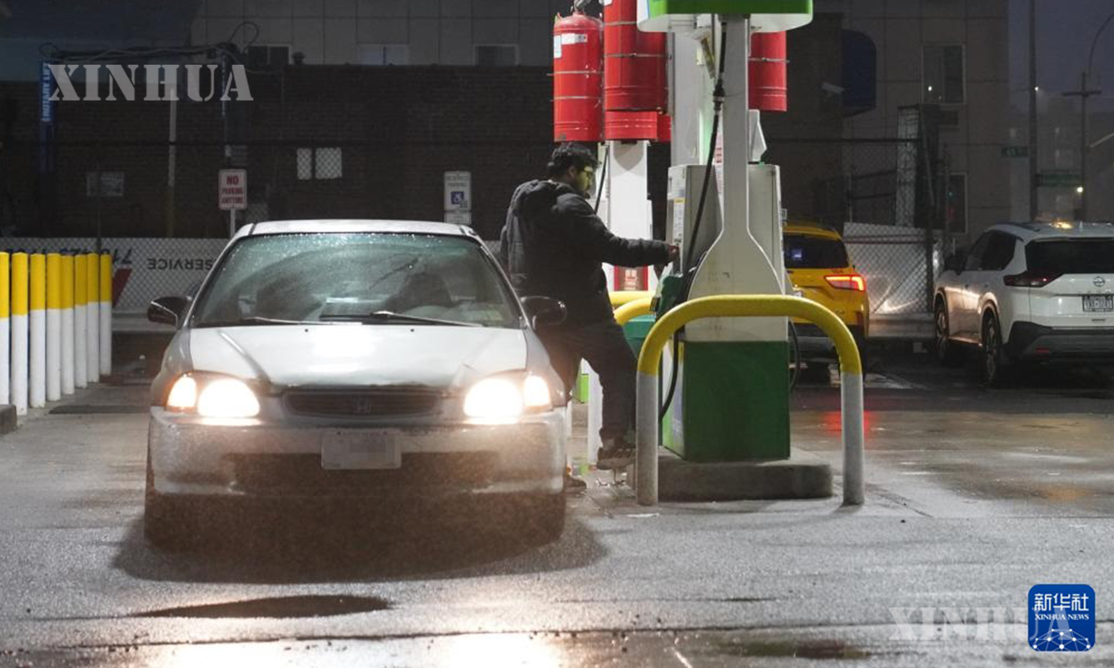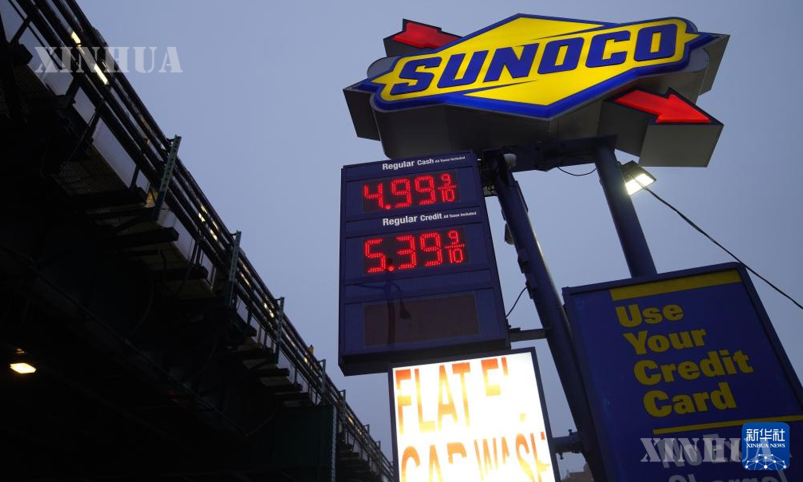 图说:这是3月5日在美国纽约一座加油站拍摄的油价显示屏。 新华社记者 张凤国 摄