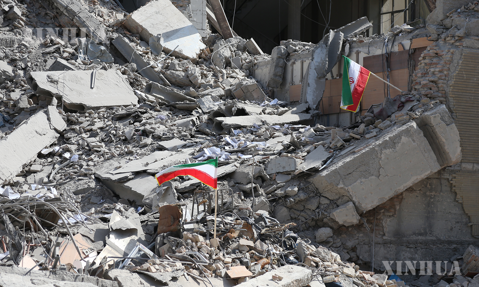 这是3月4日在伊朗德黑兰革命广场附近拍摄的一处损毁的建筑。 新华社记者 沙达提 摄