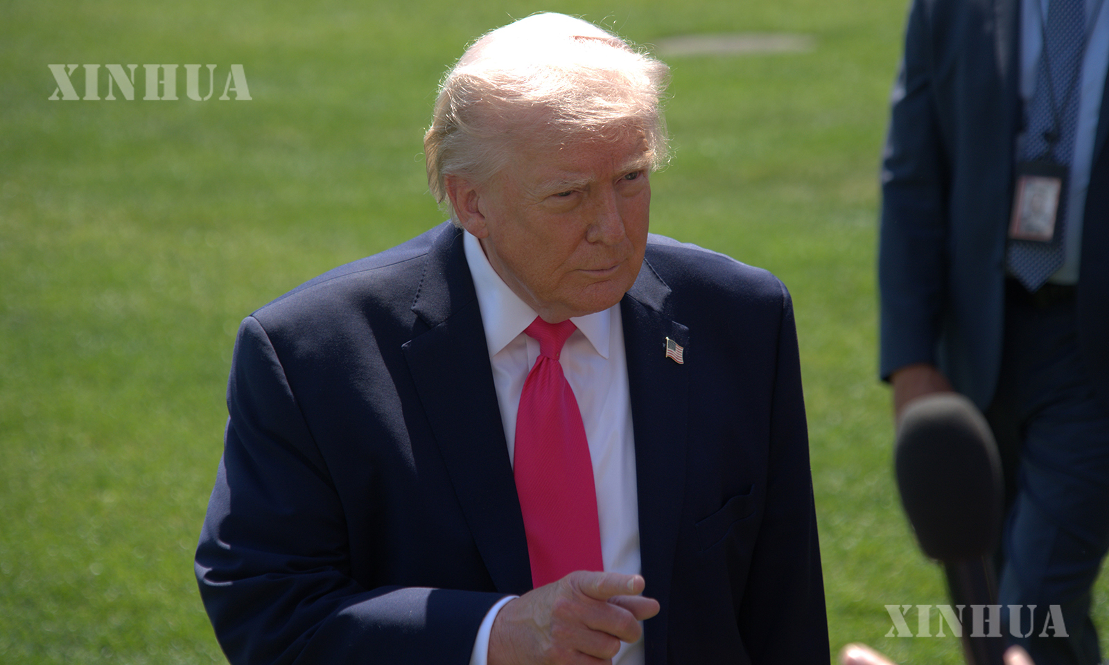 အမေရိကန်နိုင်ငံ ဝါရှင်တန်မြို့ရှိ အိမ်ဖြူတော် တောင်ဘက်မြက်ခင်းပြင်၌ မီဒီယာ တွေ့ဆုံမေးမြန်းမှုအား ဖြေကြားနေသည့် အမေရိကန်သမ္မတ ထရမ့်ကို ၂၀၂၆ ခုနှစ် ဧပြီ ၁၆ ရက်က တွေ့ရစဉ် (ဆင်ဟွာ)