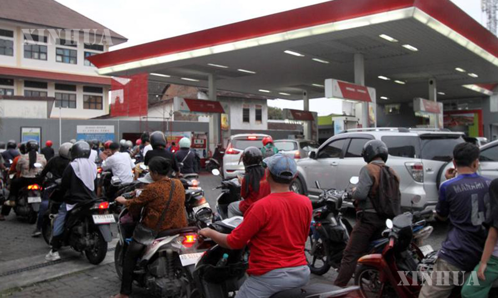 အင်ဒိုနီးရှားနိုင်ငံ ဆူရာကာတားမြို့ ဆီဆိုင်တစ်ဆိုင်တွင် ဆီဖြည့်ရန် တန်းစီနေကြသူများအား ၂၀၂၆ ခုနှစ် မတ် ၃၁ ရက်က တွေ့ရစဉ် (ဆင်ဟွာ)