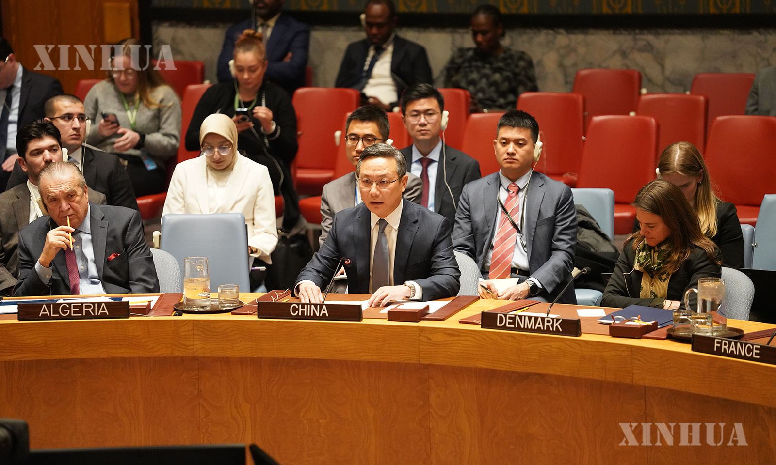 ကုလသမဂ္ဂ လုံခြုံရေးကောင်စီတွင် ဆိုမာလီယာအရေး အရေးပေါ်တံခါးဖွင့်အစည်းအဝေးတွင် တရုတ်နိုင်ငံ ဒုတိယအမြဲတမ်းကိုယ်စားလှယ် စွန်းလေ (အရှေ့၊ အလယ်) ပါဝင်ဆွေးနွေးနေသည်ကို ၂၀၂၅ ခုနှစ် ဒီဇင်ဘာ ၂၉ ရက်က တွေ့ရစဉ် (ဆင်ဟွာ)