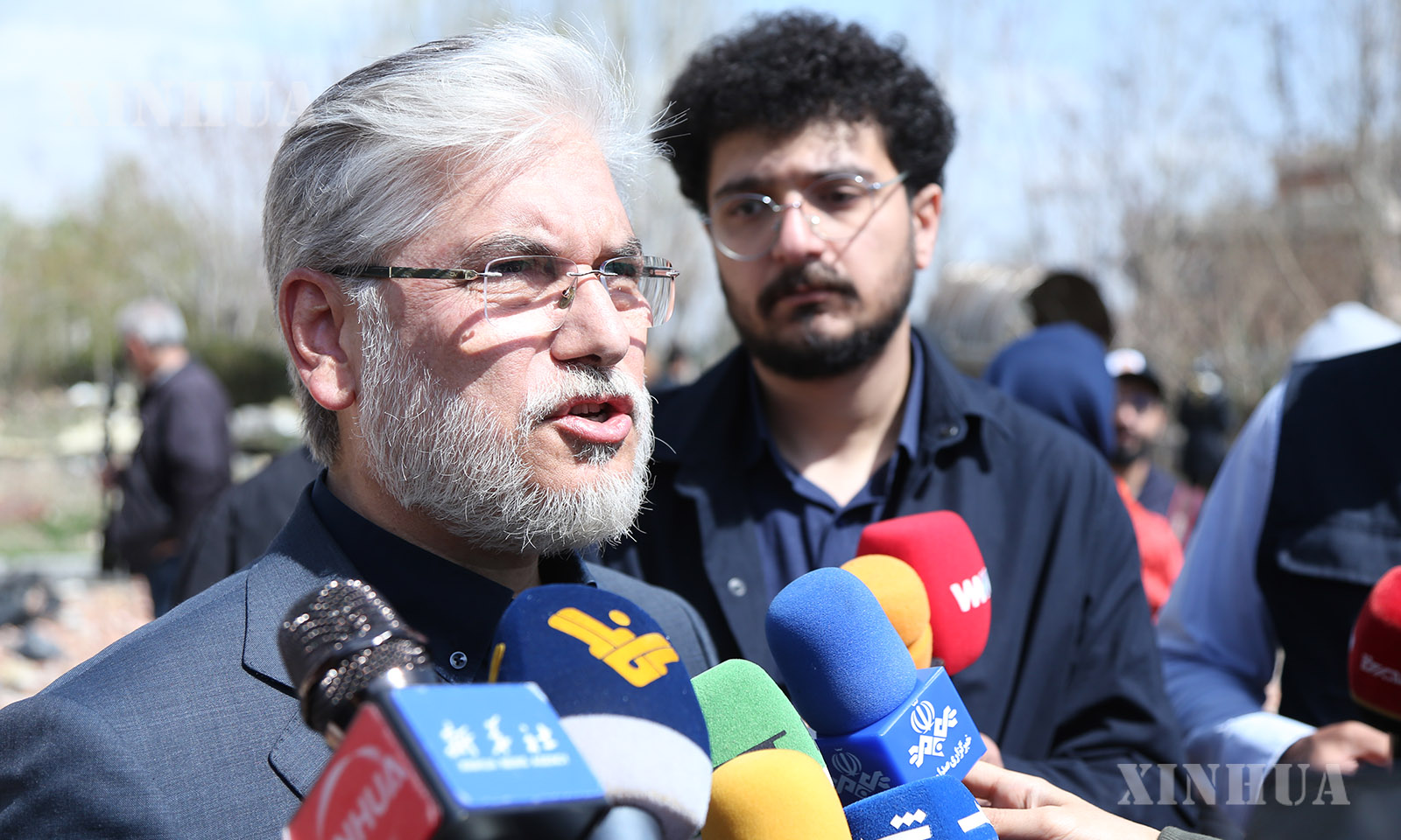 2、4月4日,在位于伊朗首都德黑兰的沙希德·贝赫什提大学,伊朗科学部长侯赛因·西迈·萨拉夫接受媒体采访。新华社记者 沙达提 摄
