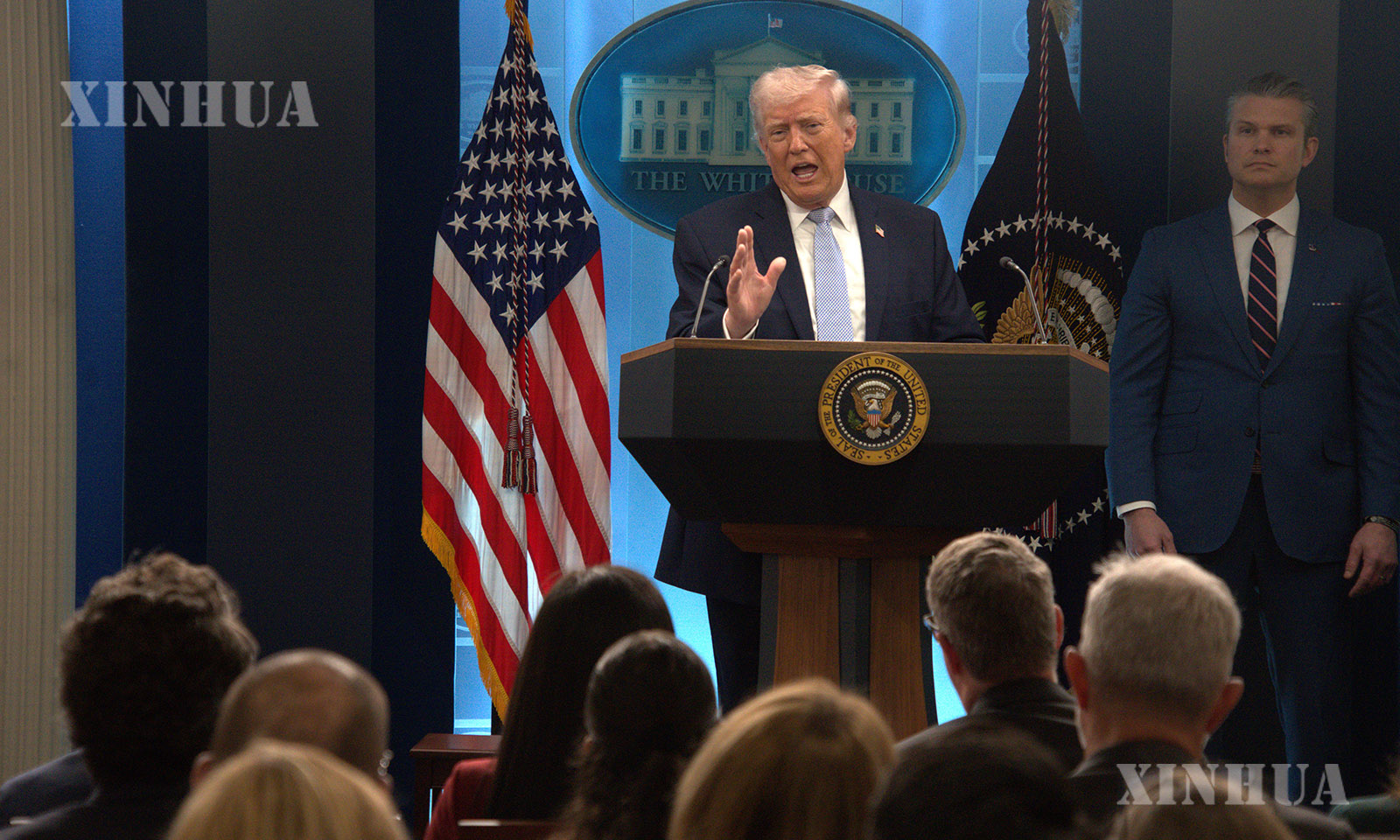 图说:4月6日,美国总统特朗普在首都华盛顿白宫举行的新闻发布会上讲话。新华社发(李源清摄)