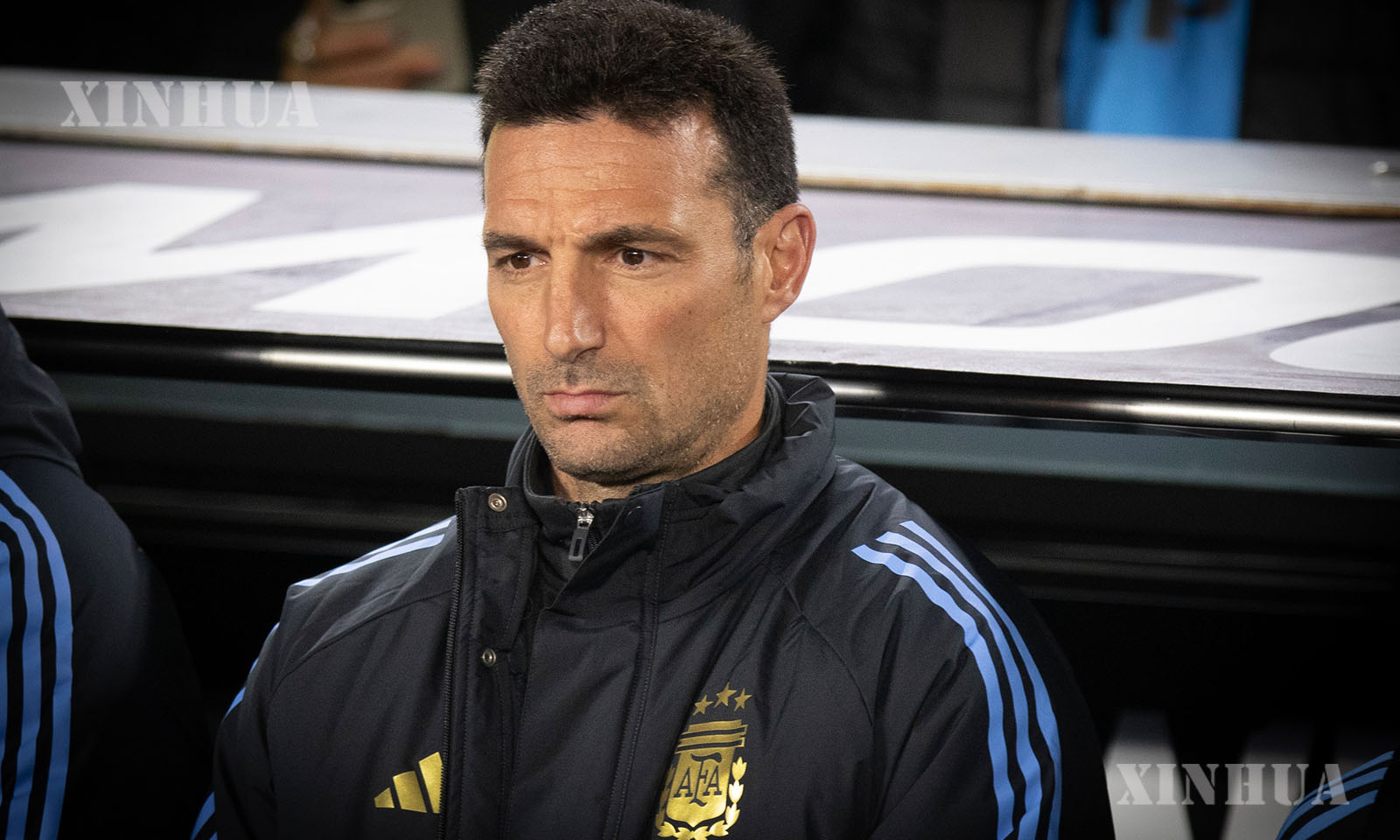Argentina’s head coach Lionel Scaloni is seen before the 2026 FIFA World Cup CONMEBOL Qualifier football match between Argentina and Colombia in Buenos Aires, Argentina, June 10, 2025. (Photo by Martin Zabala/Xinhua)