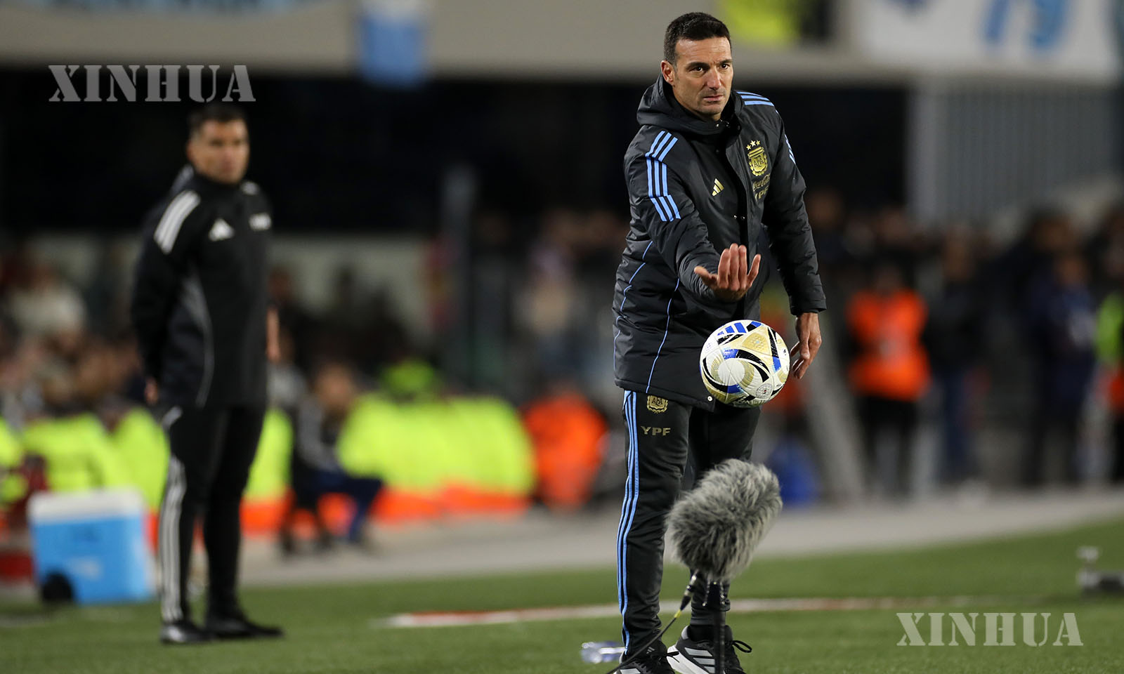 Argentina’s head coach Lionel Scaloni is seen before the 2026 FIFA World Cup CONMEBOL Qualifier football match between Argentina and Colombia in Buenos Aires, Argentina, June 10, 2025. (Photo by Martin Zabala/Xinhua)