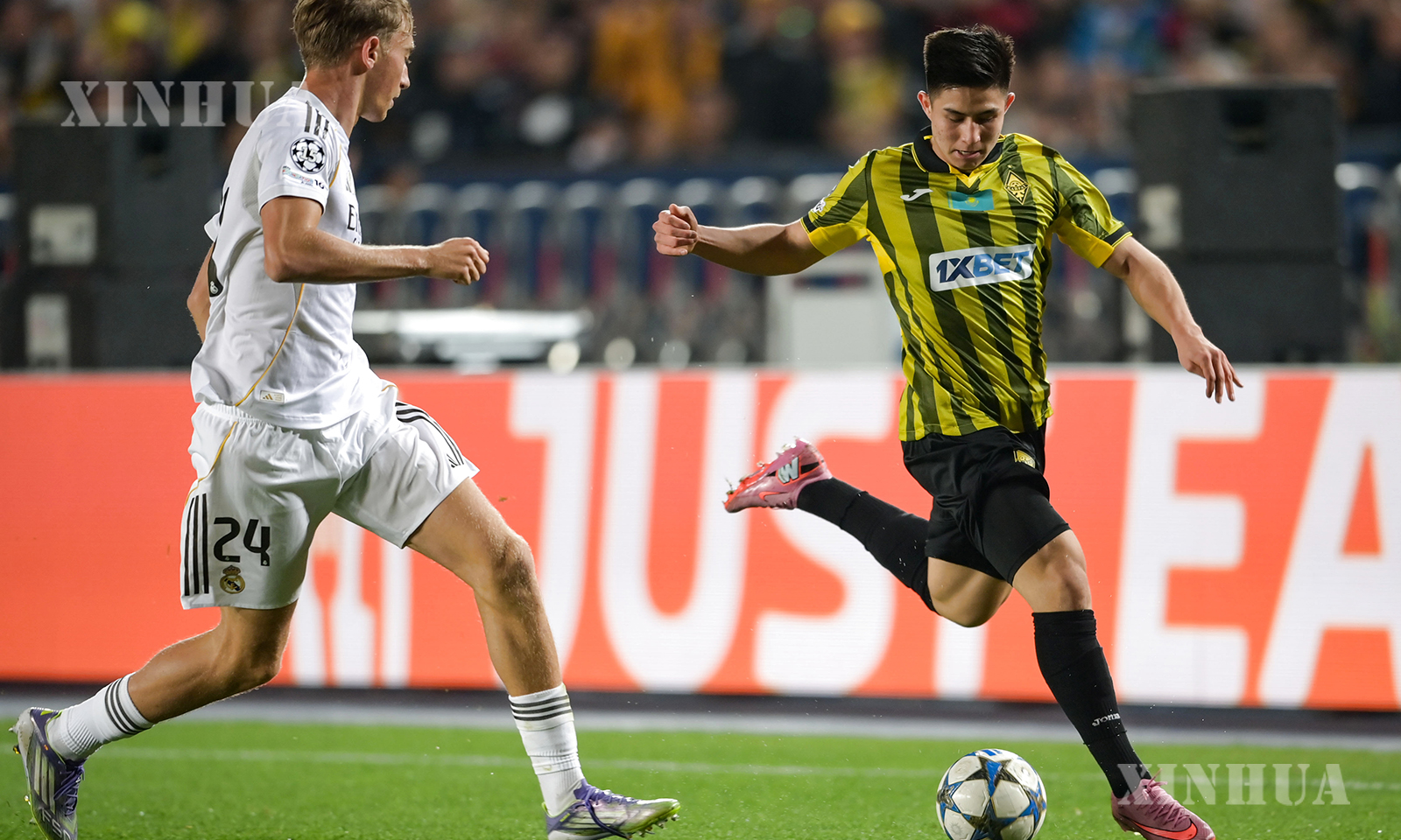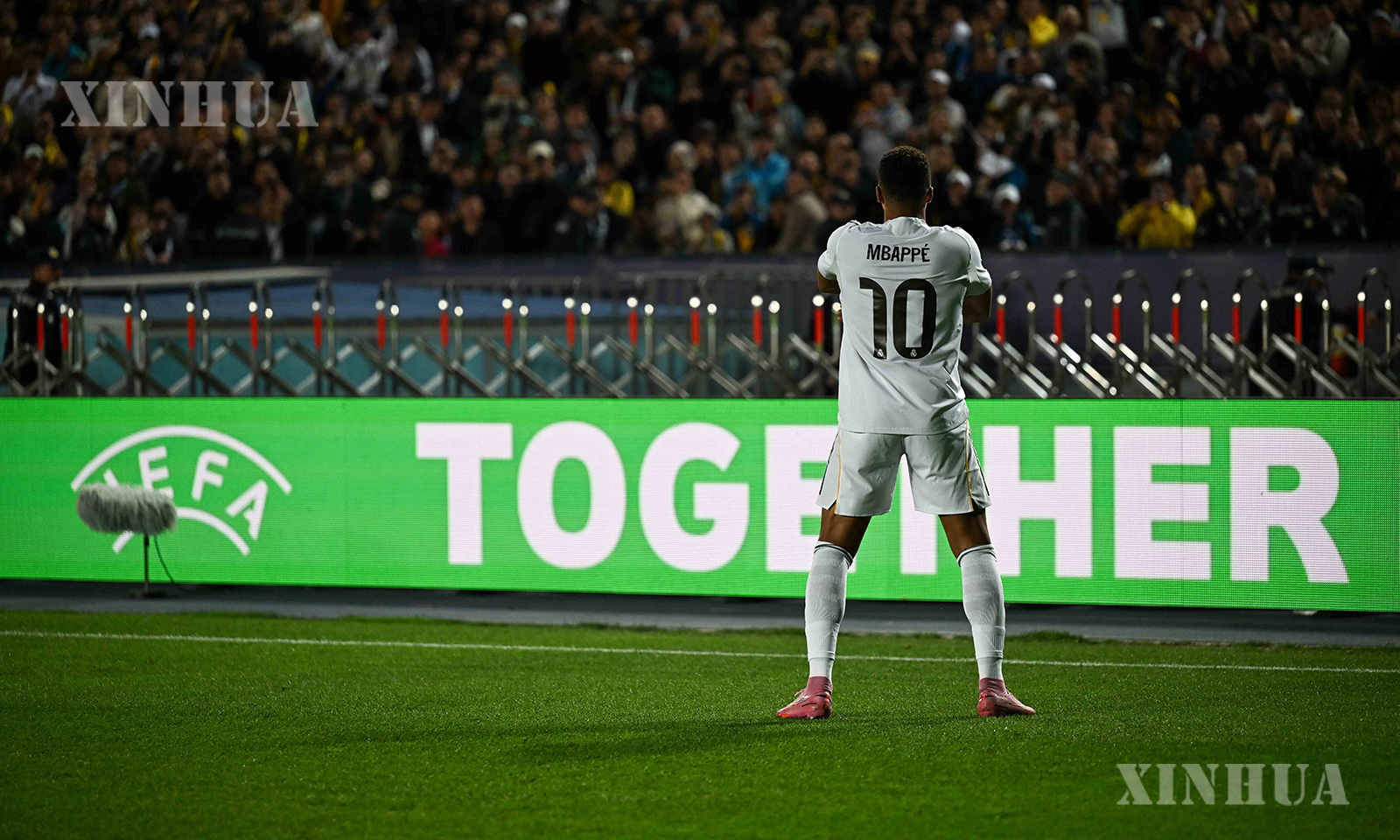 ကာဇက်စတန်နိုင်ငံ အယ်လ်မာတီမြို့တွင် ၂၀၂၅ ခုနှစ် စက်တင်ဘာ ၃၀ ရက်က ကိုင်ရတ် အယ်လ်မာတီနှင့် ရီးရဲလ်မက်ဒရစ်တို့ ယှဉ်ပြိုင်ကစားခဲ့သည့် ယူအီးအက်ဖ်အေ ချန်ပီယံလိဂ်ပွဲစဉ်၌ ရီးရဲလ်မက်ဒရစ် ကစားသမား ကီလီယန် အမ်ဘာပေ (ယာ) ဂိုးကန်သွင်းနေစဉ် (ဆင်ဟွာ)