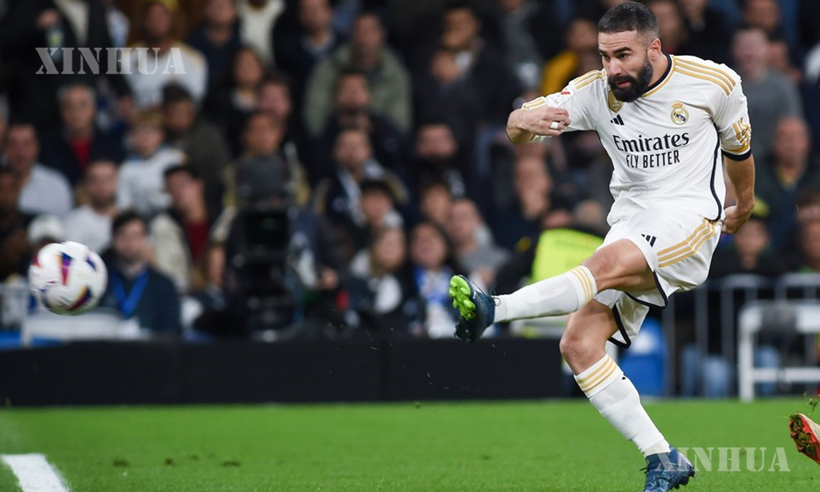 Photo : Dani Carvajal of Real Madrid shoots to score during the match. (Photo by Gustavo Valiente/Xinhua)