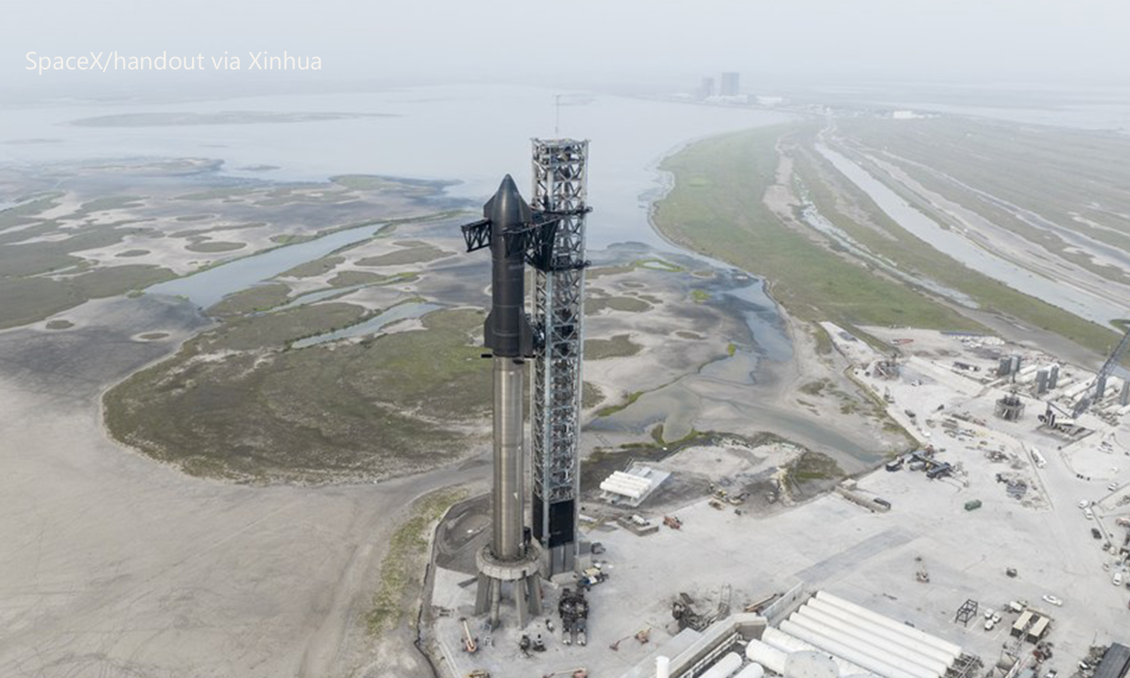 Photo released on April 11, 2023 by SpaceX shows the Starship rocket at the company’s launch facility in Texas, the United States. (SpaceX/handout via Xinhua)