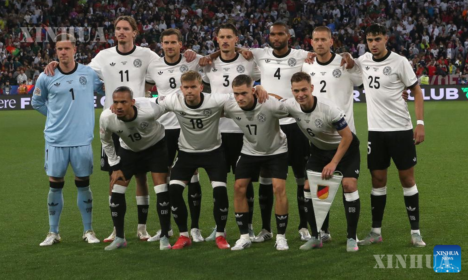 Players of Germany pose for a group photo before the UEFA Nations League A semifinal match between Germany and Portugal in Munich, Germany, June 4, 2025. (Photo by Philippe Ruiz/Xinhua)