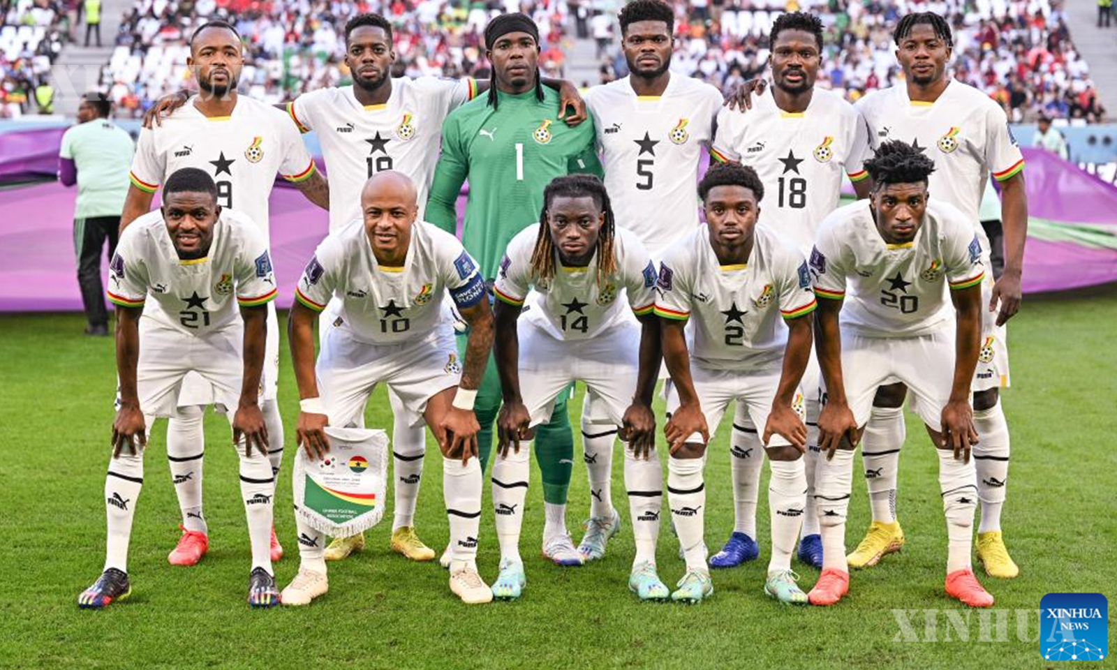Players of Ghana pose for group photos before the Group H match between South Korea and Ghana at the 2022 FIFA World Cup at Education City Stadium in Al Rayyan, Qatar, Nov. 28, 2022. (Xinhua/Xin Yuewei)