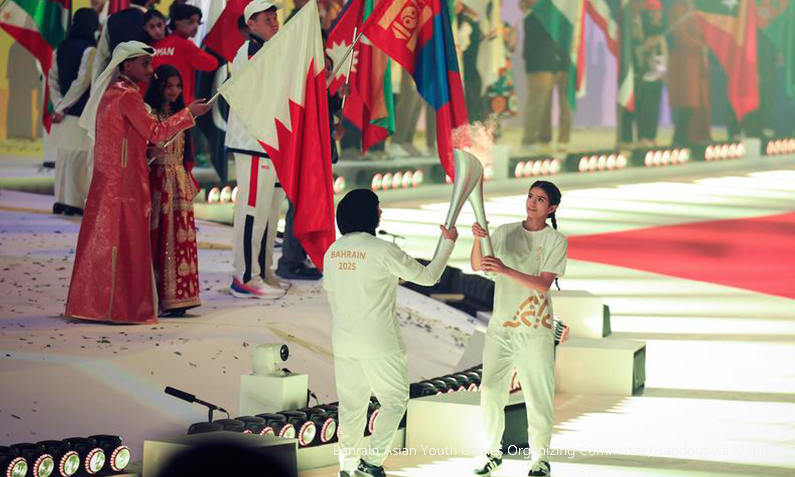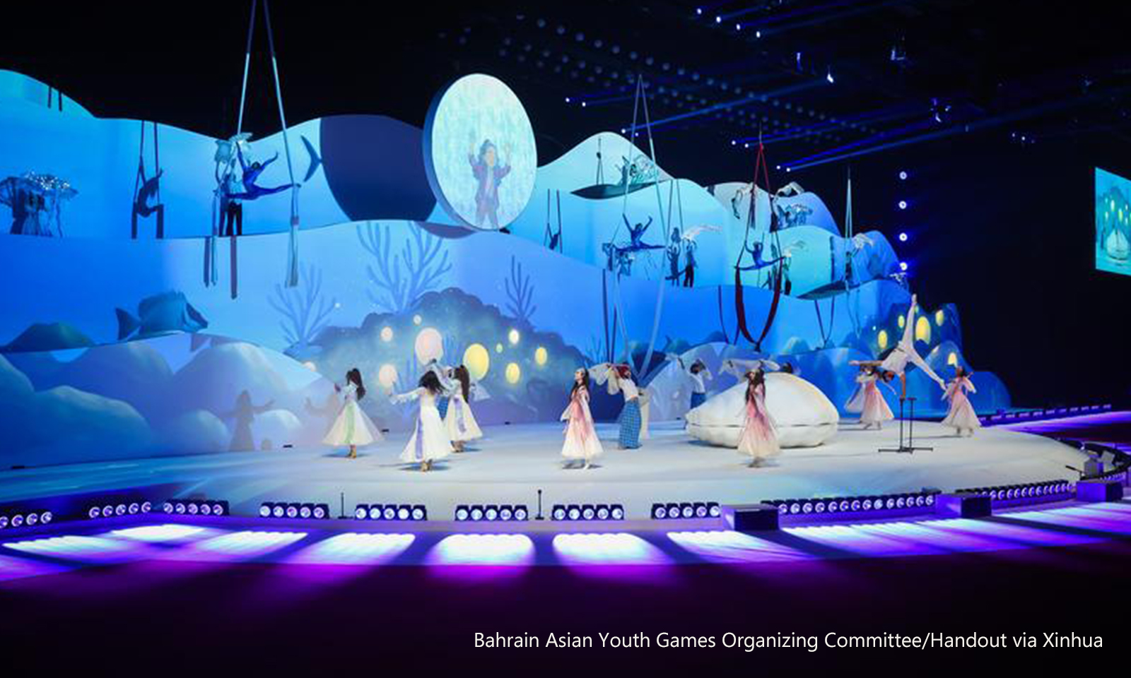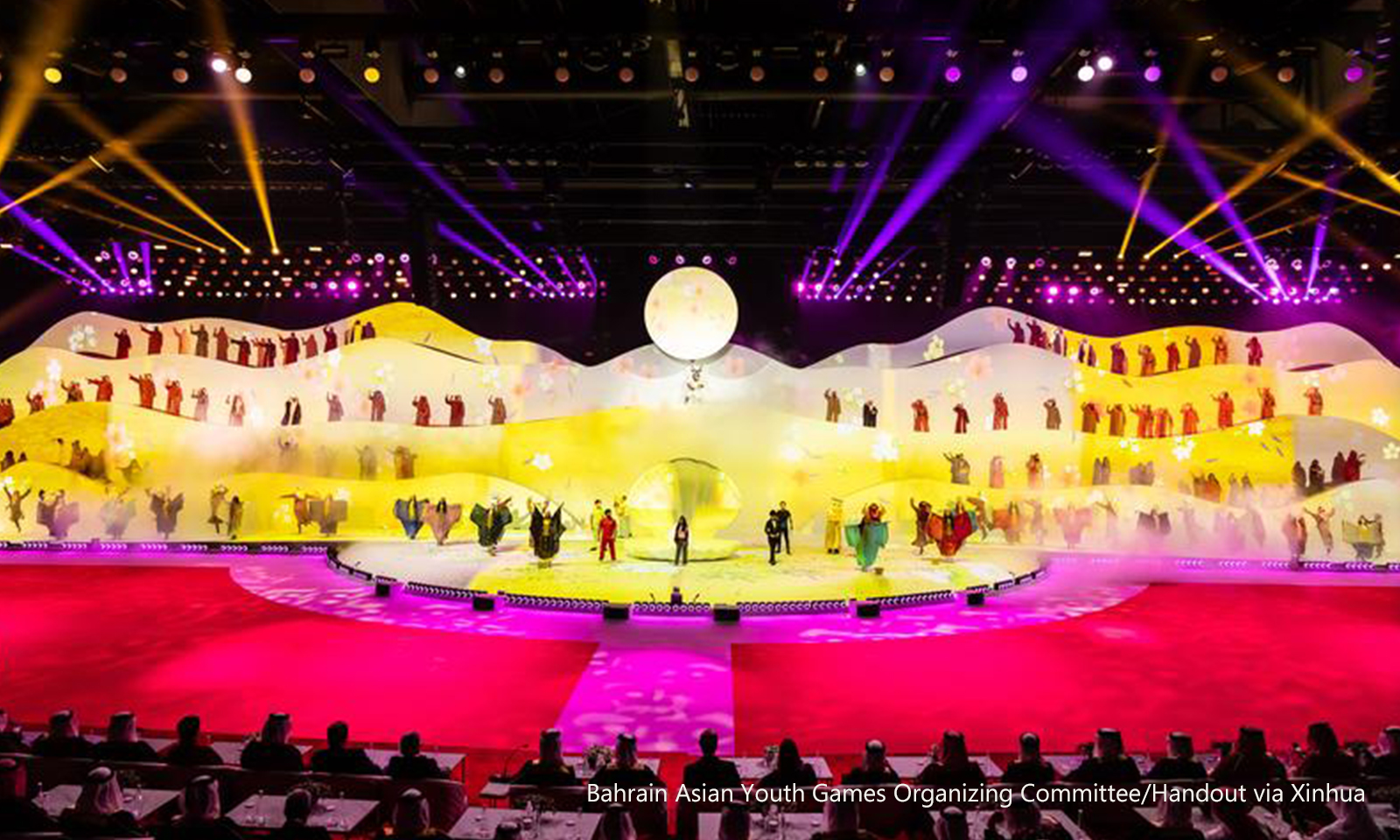 1,2,3. Artists perform during the opening ceremony of the 3rd Asian Youth Games at Exhibition World Bahrain in Sakhir, Bahrain, Oct. 22, 2025. (Bahrain Asian Youth Games Organizing Committee/Handout via Xinhua)