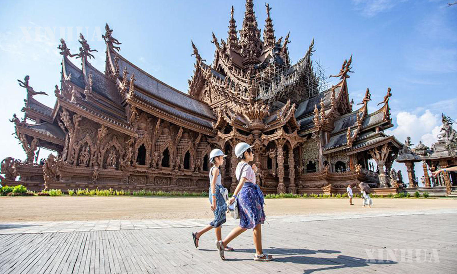 Tourists visit the Sanctuary of Truth Museum in Pattaya, Thailand, March 29, 2024. (Xinhua/Wang Teng)