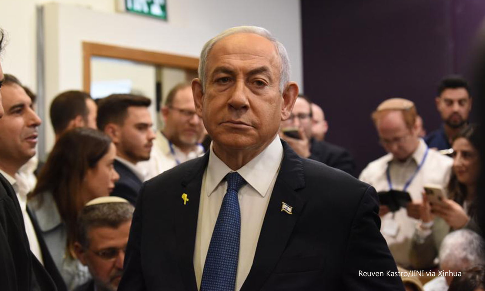 Israeli Prime Minister Benjamin Netanyahu is seen at the Tel Aviv courthouse in Tel Aviv, Israel, on Dec. 10, 2024. (Reuven Kastro/JINI via Xinhua)