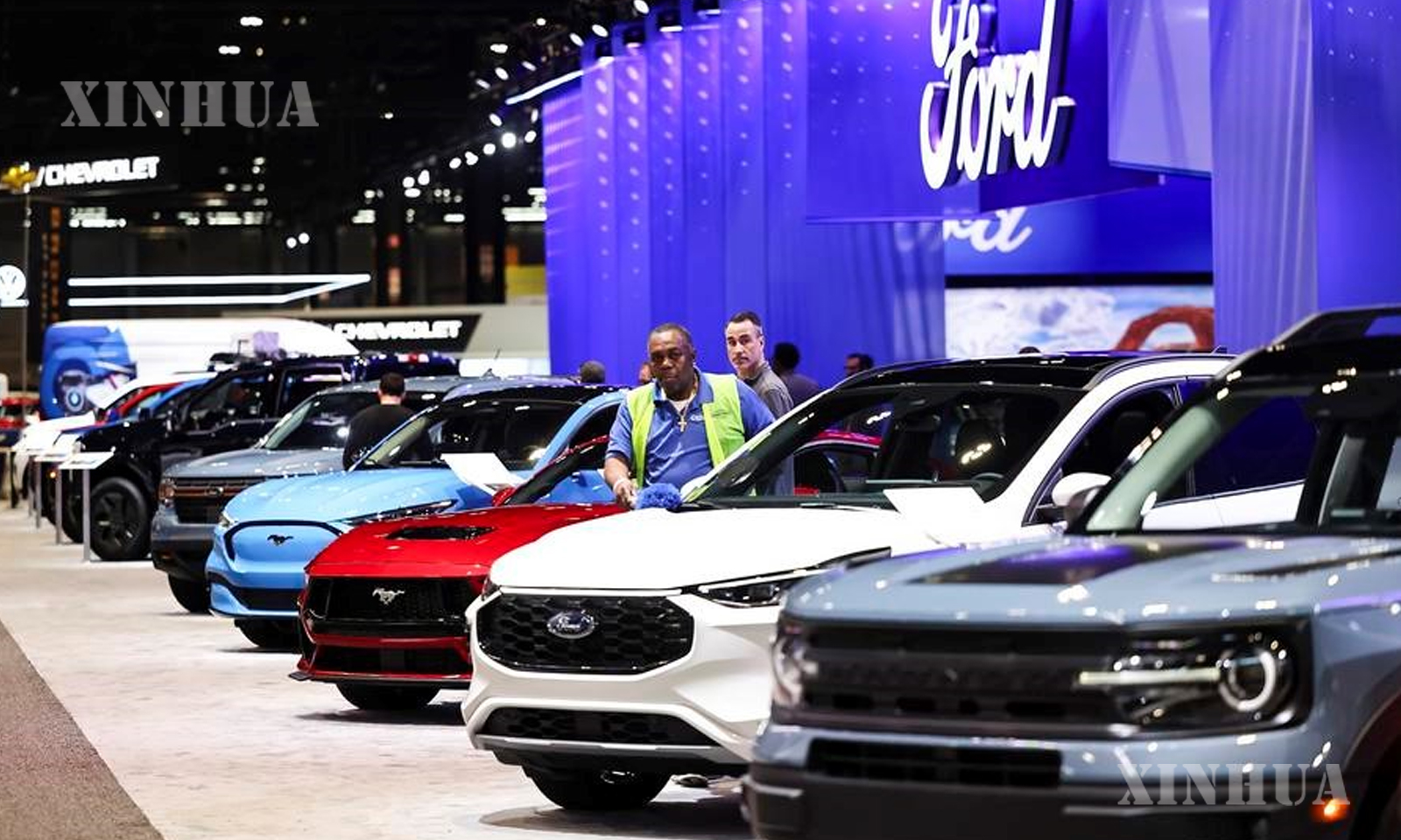 Photo : This photo taken on Feb. 8, 2024 shows the Ford lineup at the 2024 Chicago Auto Show at McCormick Place in Chicago, the United States. (Photo by Joel Lerner/Xinhua)