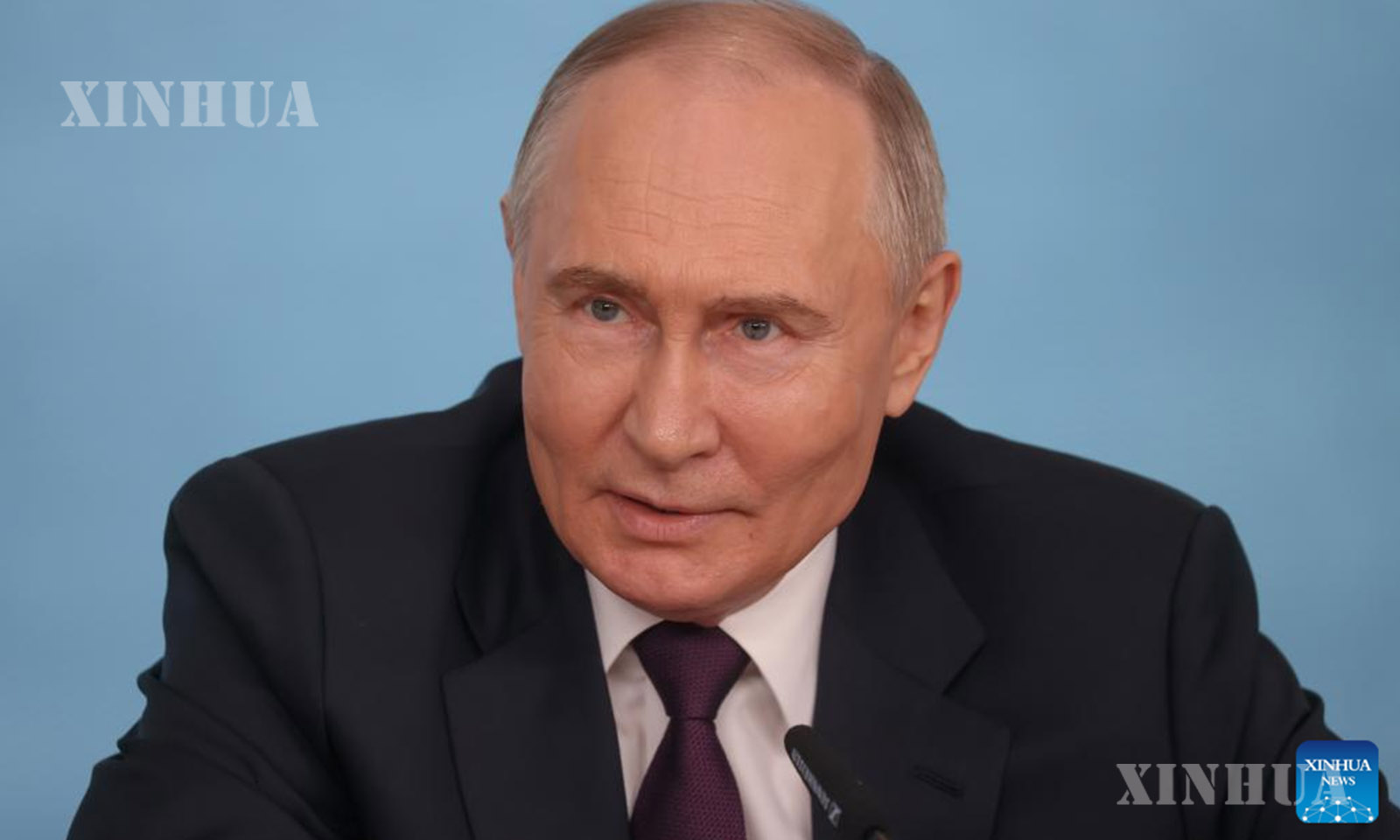 Russian President Vladimir Putin meets with heads of major international news agencies in St. Petersburg, Russia, June 5, 2024. (Russia’s presidential press service/Handout via Xinhua)