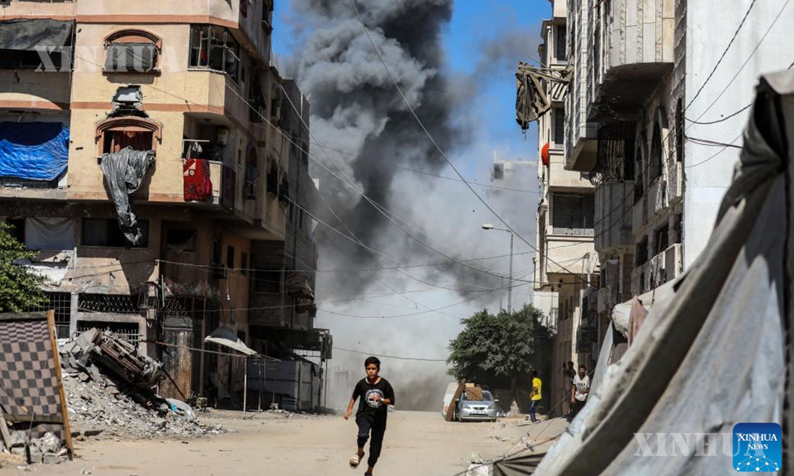 Smoke rises in Gaza City after an Israeli air strike, on Sept. 12, 2025. (Photo by Rizek Abdeljawad/Xinhua)