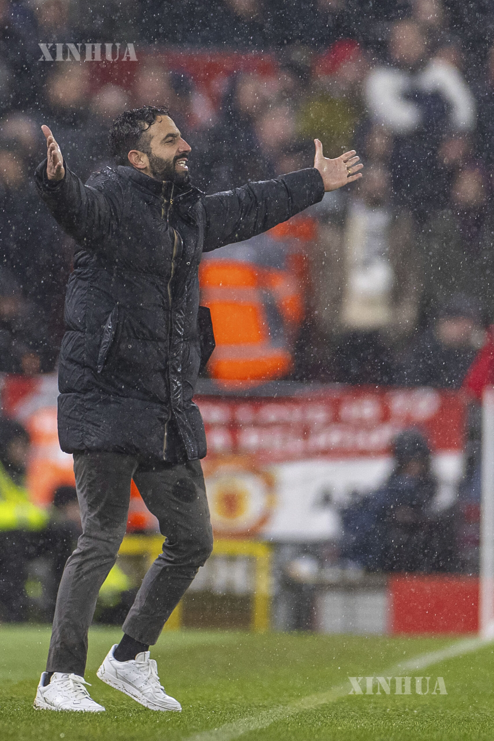 ဗြိတိန်နိုင်ငံ လီဗာပူးလ်မြို့တွင် ၂၀၂၅ ခုနှစ် ဇန်နဝါရီ ၅ ရက်က လီဗာပူးလ်အသင်းနှင့် မန်ချက်စတာယူနိုက်တက်အသင်းတို့ ယှဉ်ပြိုင်ကစားခဲ့သည့် အင်္ဂလိပ် ပရီးမီးယားလိဂ် ဘောလုံးပွဲစဉ်၌ မန်ချက်စတာယူနိုက်တက်နည်းပြ ရူဘင် အာမိုရင်မ်အား တွေ့ရစဉ် (ဆင်ဟွာ)