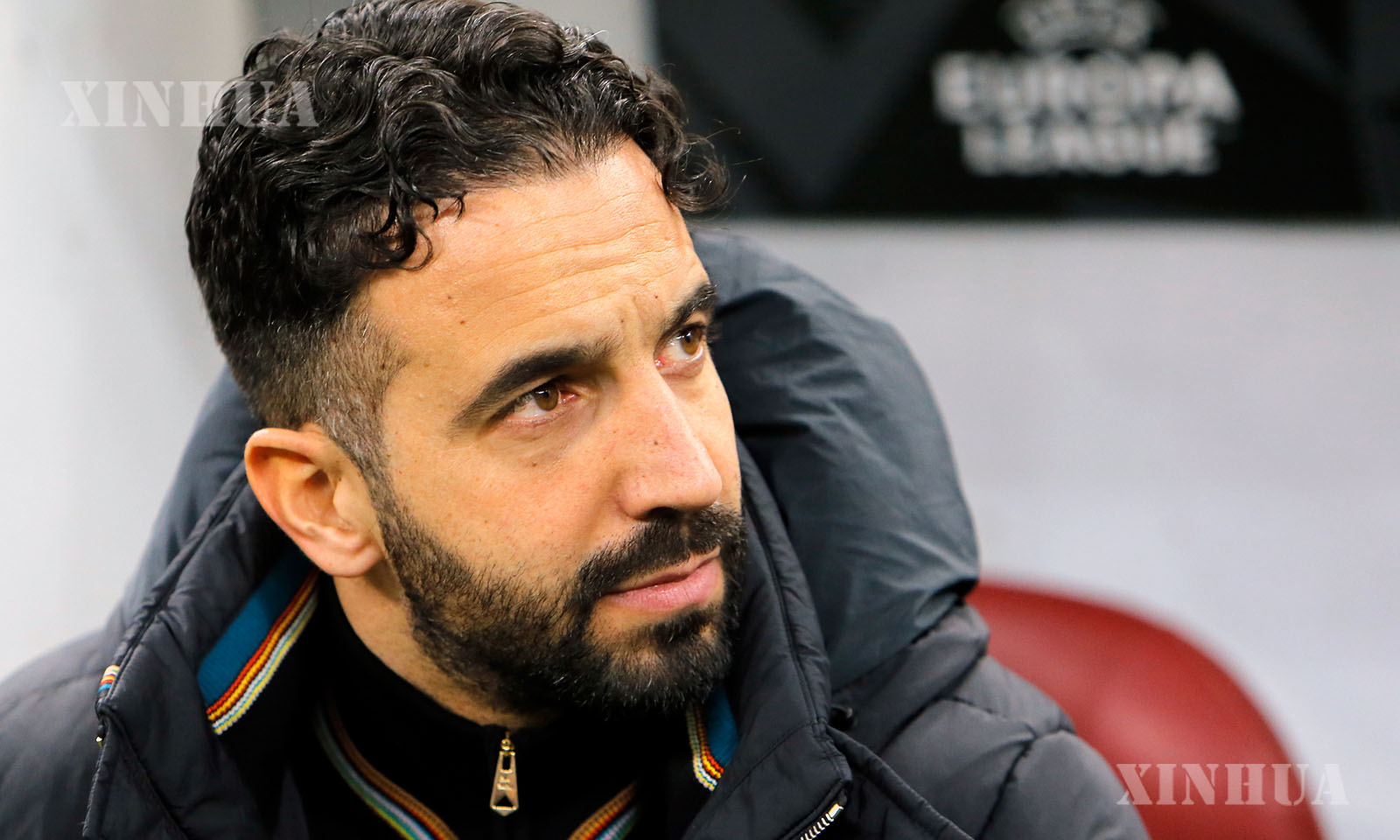 ရိုမေးနီးယားနိုင်ငံ ဘူခါရက်စ်မြို့တွင် ၂၀၂၅ ခုနှစ် ဇန်နဝါရီ ၃၀ ရက်က မန်ချက်စတာယူနိုက်တက်နှင့် FCSB အသင်းတို့ ယှဉ်ပြိုင်ကစားခဲ့သည့် ယူအီးအက်ဖ်အေ ယူရိုပါလိဂ် ဘောလုံးပွဲစဉ်၌ ကစားသမားများအား အော်ဟစ်ညွှန်ကြားနေသည့် မန်ချက်စတာယူနိုက်တက်နည်းပြ ရူဘင် အာမိုရင်မ် (ရှေ့) အား တွေ့ရစဉ် (ဆင်ဟွာ)