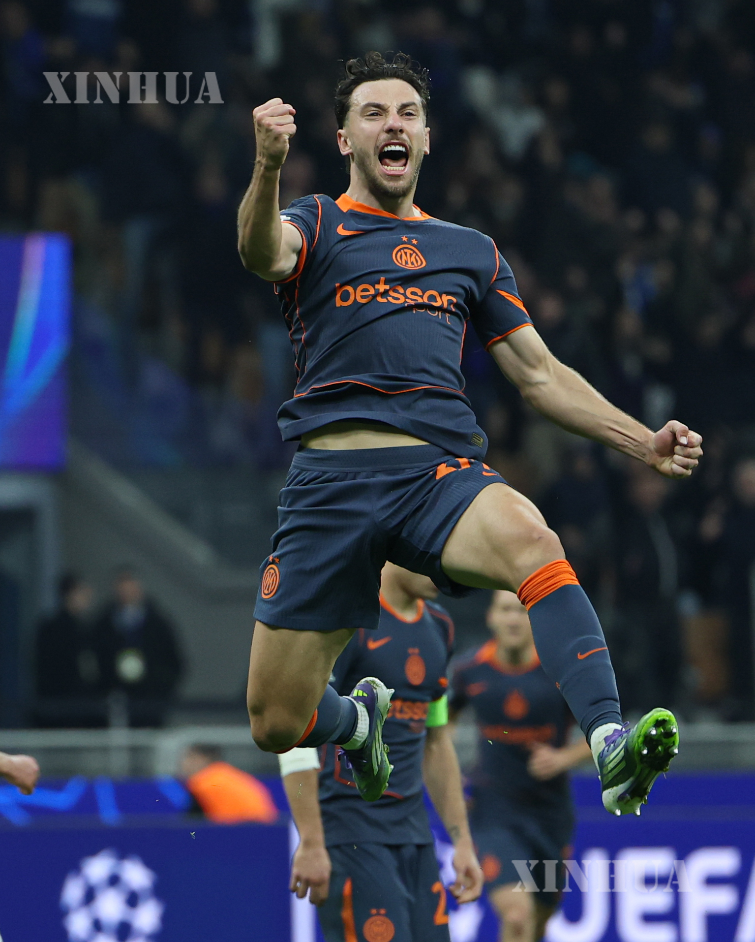 အီတလီနိုင်ငံ မီလန်မြို့တွင် ၂၀၂၅ ခုနှစ် နိုဝင်ဘာ ၅ ရက်က အီတလီကလပ် အင်တာမီလန်အသင်းနှင့် ကာဇက်စတန်ကလပ် ကိုင်ရတ် အယ်လ်မာတီအသင်းတို့ ယှဉ်ပြိုင်ကစားခဲ့သည့် ယူအီးအက်ဖ်အေ ချန်ပီယံလိဂ်ပွဲစဉ်၌ အင်တာမီလန်အသင်းမှ မားကပ်စ် သူရမ် (ယာ-ဒုတိယ) ၏ ယှဉ်ပြိုင်ကစားဟန်ကို တွေ့ရစဉ် (ဆင်ဟွာ)