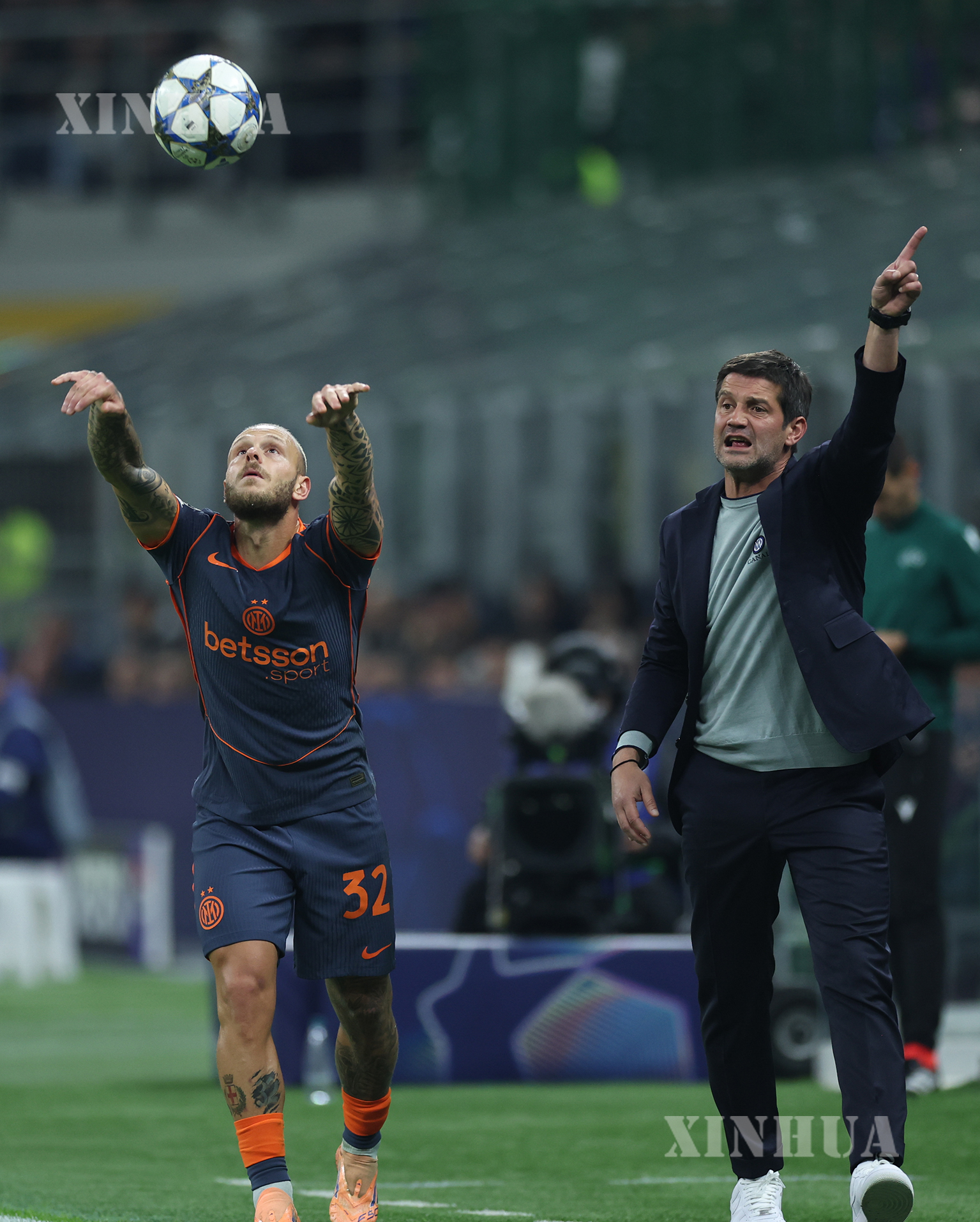 Inter Milan’s Marcus Thuram (2nd R) competes during the league phase match between Inter Milan of Italy and Kairat Almaty of Kazakhstan at the UEFA Champions League in Milan, Italy, Nov. 5, 2025. (Xinhua/Li Jing)