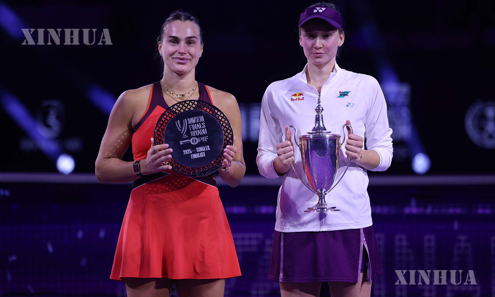 RIYADH, Nov. 9 (Xinhua) — Former Wimbledon champion Elena Rybakina of Kazakhstan defeated world No. 1 Aryna Sabalenka of Belarus 6-3, 7-6 (0) to become the first Asian player ever to win the WTA Finals singles title on Saturday night.