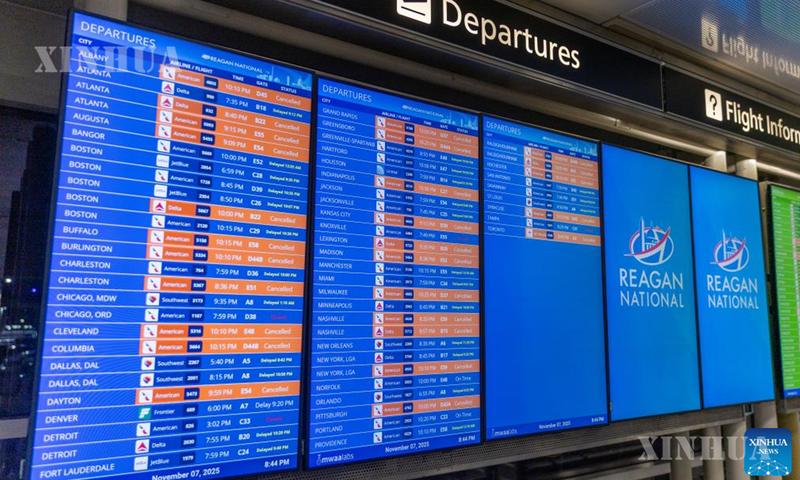WASHINGTON, Nov. 9 (Xinhua) — As the U.S. federal government shutdown entered its 40th day on Sunday, more than 2,000 flights were canceled and over 8,000 delayed nationwide, according to flight tracking website FlightAware.