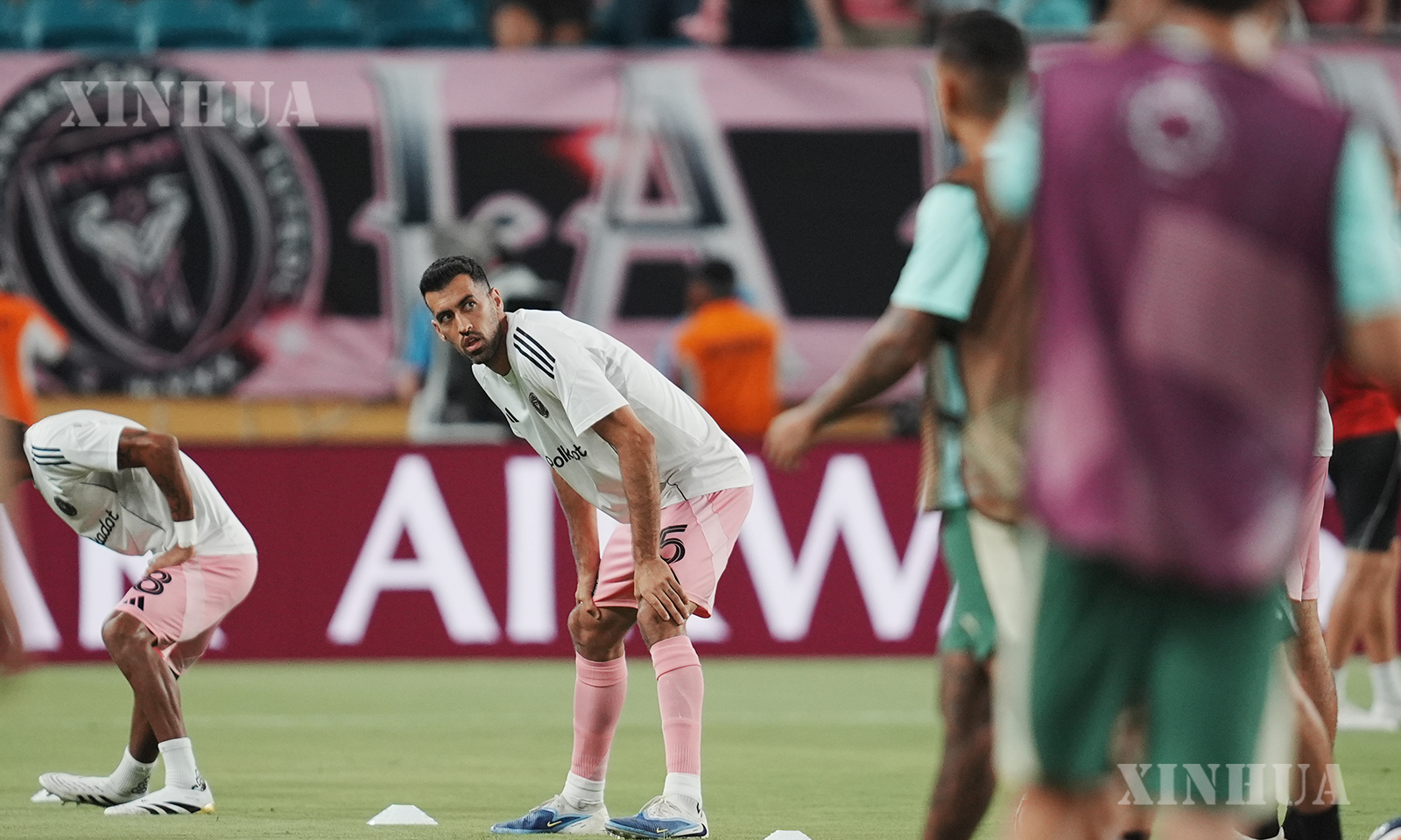 အမေရိကန်နိုင်ငံ မိုင်ယာမီမြို့ရှိ ဟာ့ဒ်ရော့ခ်အားကစားကွင်း၌ ၂၀၂၅ ခုနှစ် ဇွန် ၂၃ ရက်က အမေရိကန်ကလပ် အင်တာမိုင်ယာမီအသင်းနှင့် ဘရာဇီးကလပ် ပါလ်မီးရက်စ်အသင်းတို့ ယှဉ်ပြိုင်ကစားသည့် ၂၀၂၅ ခုနှစ် ဖီဖာကလပ်ကမ္ဘာ့ဖလားပြိုင်ပွဲ အုပ်စု-A ပွဲစဉ်မတိုင်မီ အားကစားကွင်းထဲသို့ ရောက်ရှိလာသော အင်တာမိုင်ယာမီအသင်းမှ ဆာဂျီယို ဘူးစကွက်စ်အား တွေ့ရစဉ် (ဆင်ဟွာ)