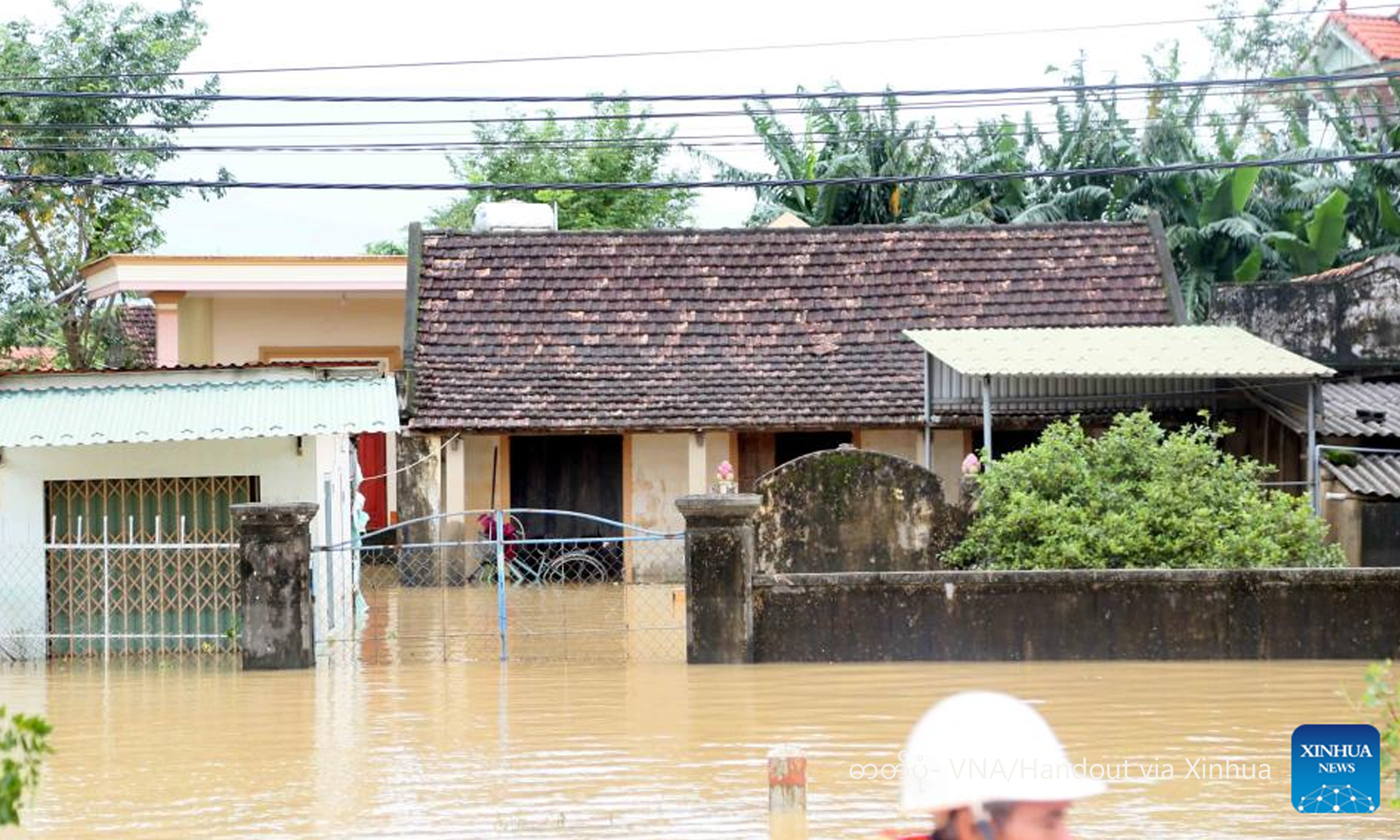 Photo : Flooded houses are pictured in Quang Tri Province, Vietnam, Nov. 4, 2025. (VNA/Handout via Xinhua)