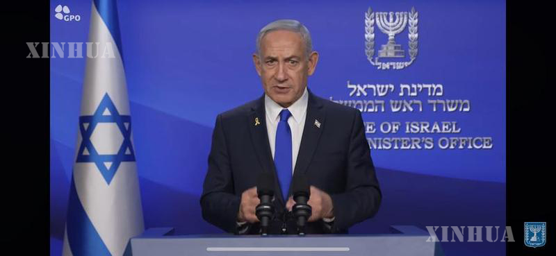 This video screenshot shows Israeli Prime Minister Benjamin Netanyahu delivering a video address on June 13, 2025. (Xinhua)