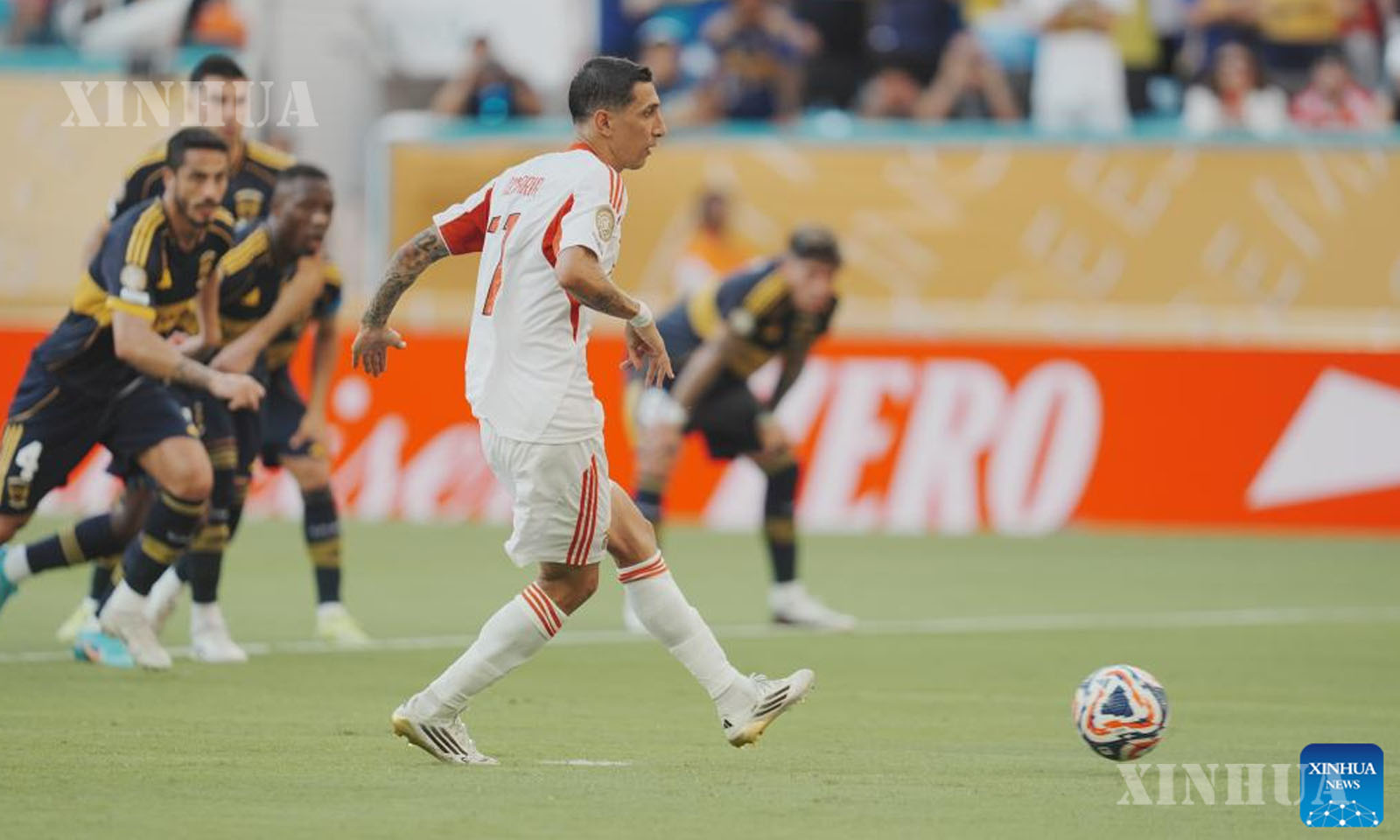 Photo : Angel Di Maria (front) of SL Benfica takes a penalty kick during the group C match between CA Boca Juniors of Argentina and SL Benfica of Portugal at the FIFA Club World Cup 2025 at the Hard Rock Stadium, Miami, the United States, June 16, 2025. (Xinhua/Huang Zongzhi)