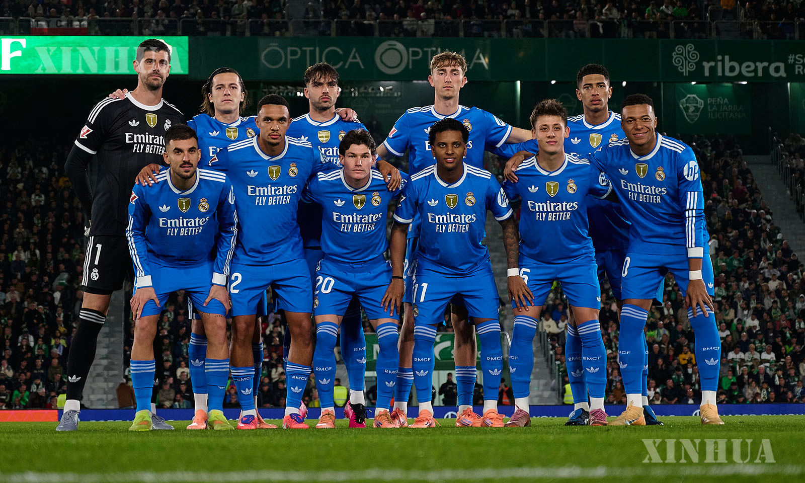 Players of Real Madrid pose for photos prior to the La Liga football match between Elche and Real Madrid in Elche, Spain, on Nov. 23, 2025. (Xinhua)