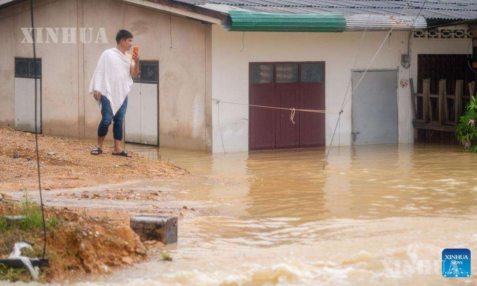 A man checks a flood-hit area in the suburb of Hat Yai, Songkhla province, Thailand, Nov. 25, 2025. (Xinhua)