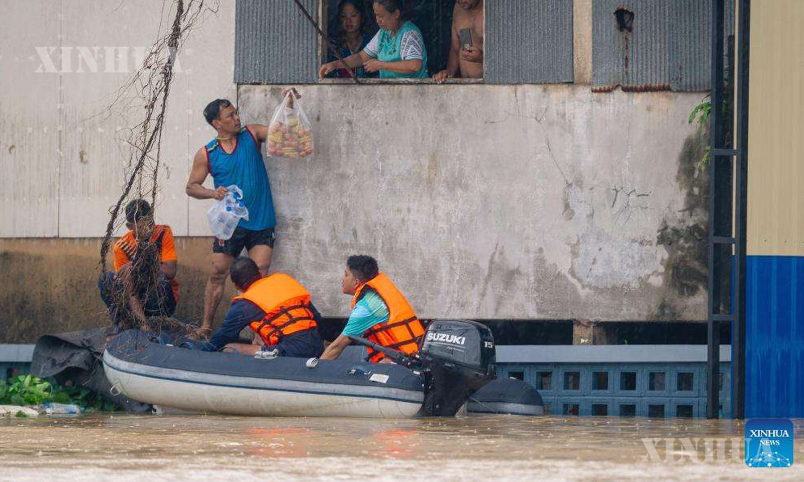 Stranded residents receive supplies from rescuers in the suburb of Hat Yai, Songkhla province, Thailand, Nov. 25, 2025. (Xinhua)