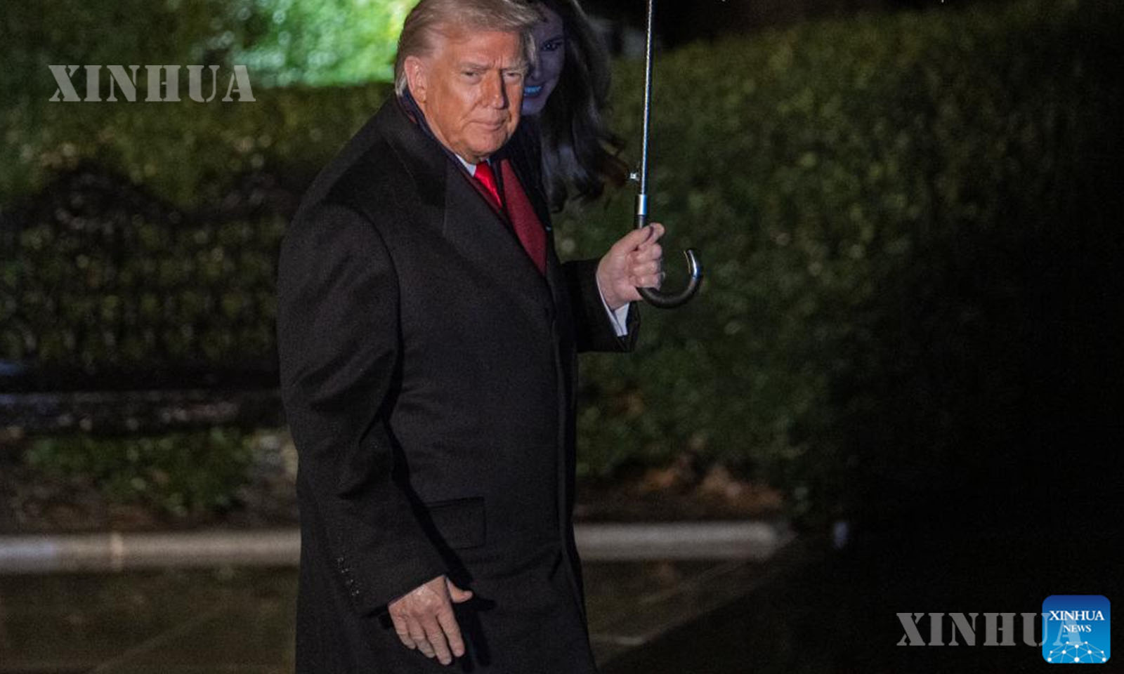 U.S. President Donald Trump and First Lady Melania Trump depart the White House in Washington, D.C. on Nov. 25, 2025. (Xinhua/Hu Yousong)