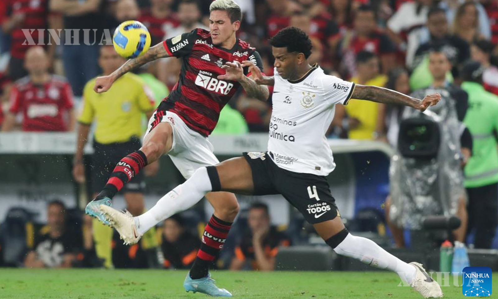Photo : Pedro (L) of Flamengo vies with Carlos Gilberto of Corinthians during the final of the Copa do Brasil 2022 in Rio de Janeiro, Brazil, Oct. 19, 2022. (Xinhua/Wang Tiancong)