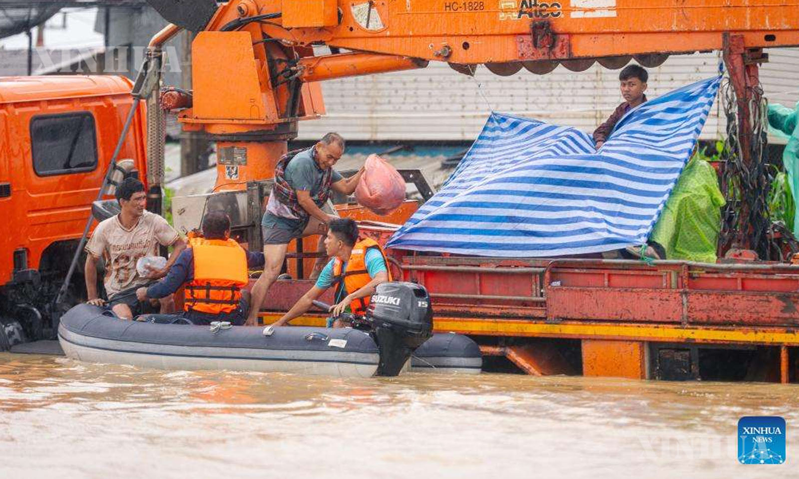 Rescuers evacuate residents in the suburb of Hat Yai, Songkhla province, Thailand, Nov. 25, 2025. (Xinhua)