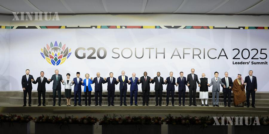 Photo 1: Leaders attending the first session of the 20th G20 Summit, which focuses on inclusive and sustainable economic growth, pose for a group photo in Johannesburg, South Africa, Nov. 22, 2025. (Xinhua/Huang Jingwen)