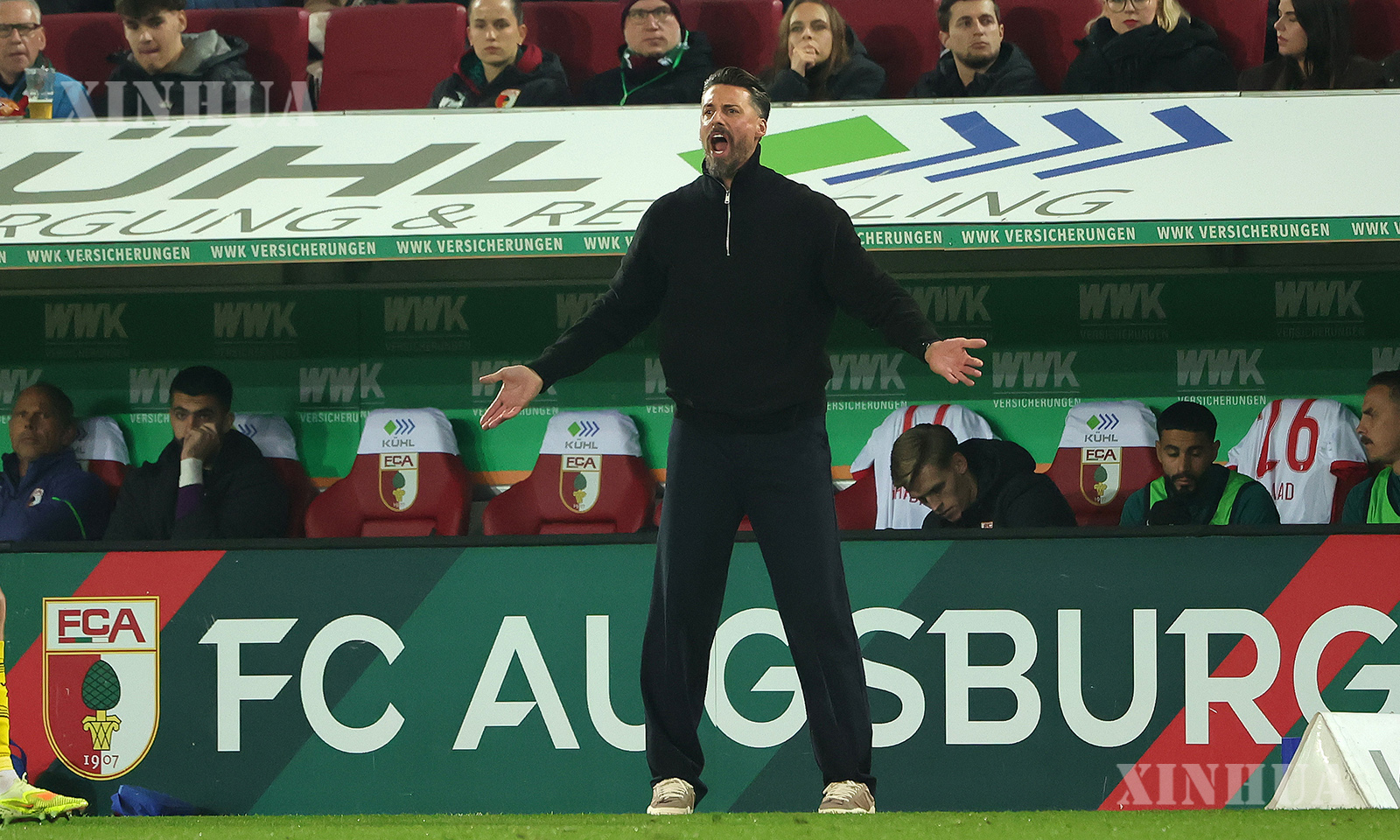 FC Augsburg’s head coach Sandro Wagner gestures during the German first division Bundesliga football match between FC Augsburg and Borussia Dortmund in Augsburg, Germany, Oct. 31, 2025. (Photo by Philippe Ruiz/Xinhua)
