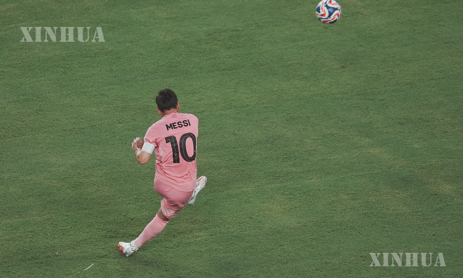 Lionel Messi of Inter Miami CF takes a free kick during the 2025 Major League Soccer (MLS) regular season match between Toronto FC and Inter Miami CF at BMO Field in Toronto, Canada, on Sept. 27, 2025. (Photo by Zou Zheng/Xinhua)