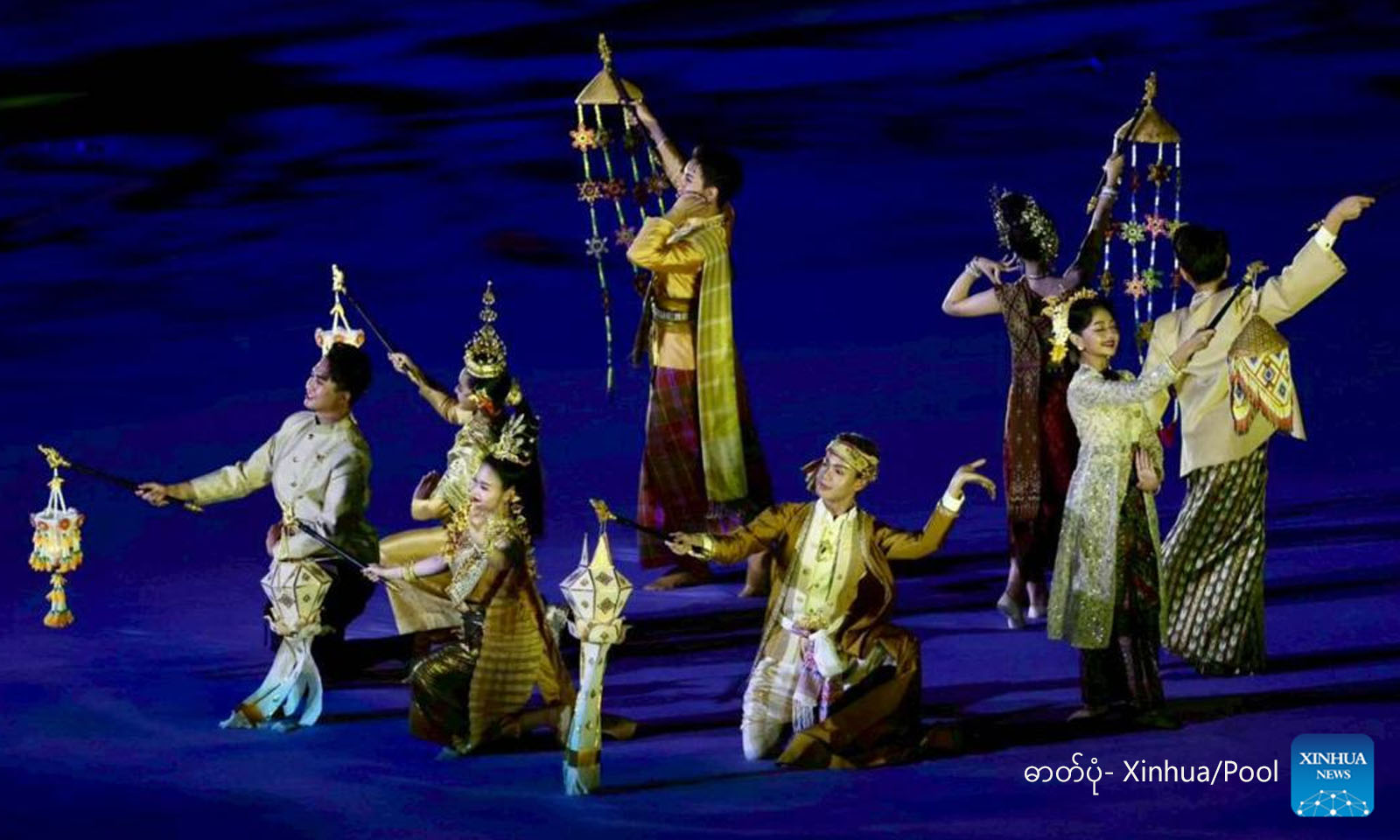 ထိုင်းနိုင်ငံ ဘန်ကောက်မြို့တွင် ကျင်းပသည့် ၃၃ ကြိမ်မြောက် အ‌ရှေ့တောင်အာရှ အားကစားပြိုင်ပွဲ ဖွင့်ပွဲအခမ်းအနား၌ အကဖြင့်ဖျော်ဖြေတင်ဆက်နေသူများအား ၂၀၂၅ ခုနှစ် ဒီဇင်ဘာ ၉ ရက်က တွေ့ရစဉ် (ဓာတ်ပုံ- Xinhua/Pool)