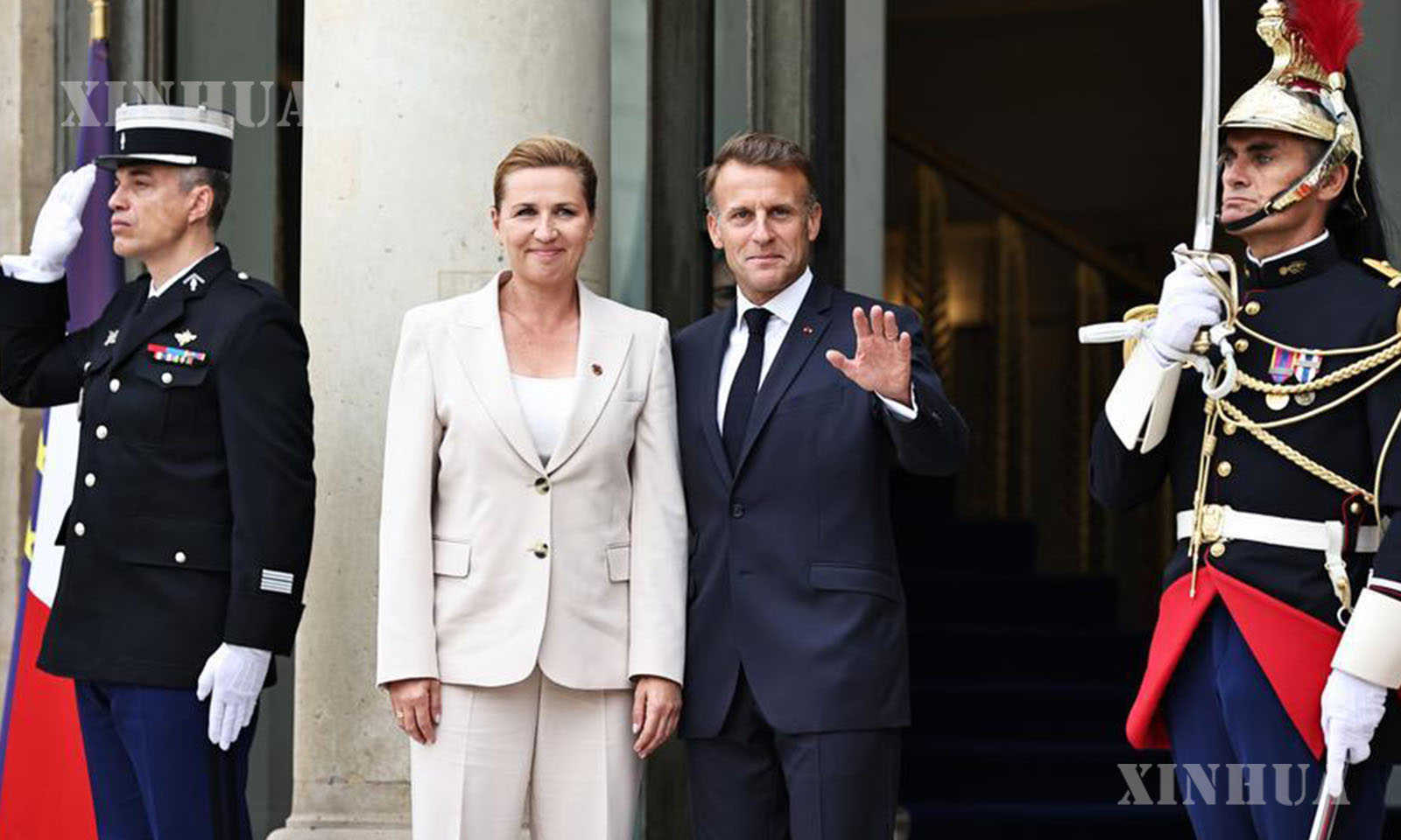 ပြင်သစ်နိုင်ငံ ပဲရစ်မြို့ရှိ အီလီဇီးနန်းတော်၌ ပြုလုပ်သည့် “Coalition of the Willing” အစည်းအဝေး တက်ရောက်ရန် ရောက်ရှိလာသော ဒိန်းမတ်ဝန်ကြီးချုပ် မက် ဖရက်ဒရစ်ဆင် (ဝဲ-ဒုတိယ) ကို ကြိုဆိုနေသည့် ပြင်သစ်သမ္မတ အီမန်နျူရယ် မက်ခရွန် (ယာ-ဒုတိယ) အား ၂၀၂၅ ခုနှစ် စက်တင်ဘာ ၄ ရက် တွေ့ရစဉ် (ဆင်ဟွာ)