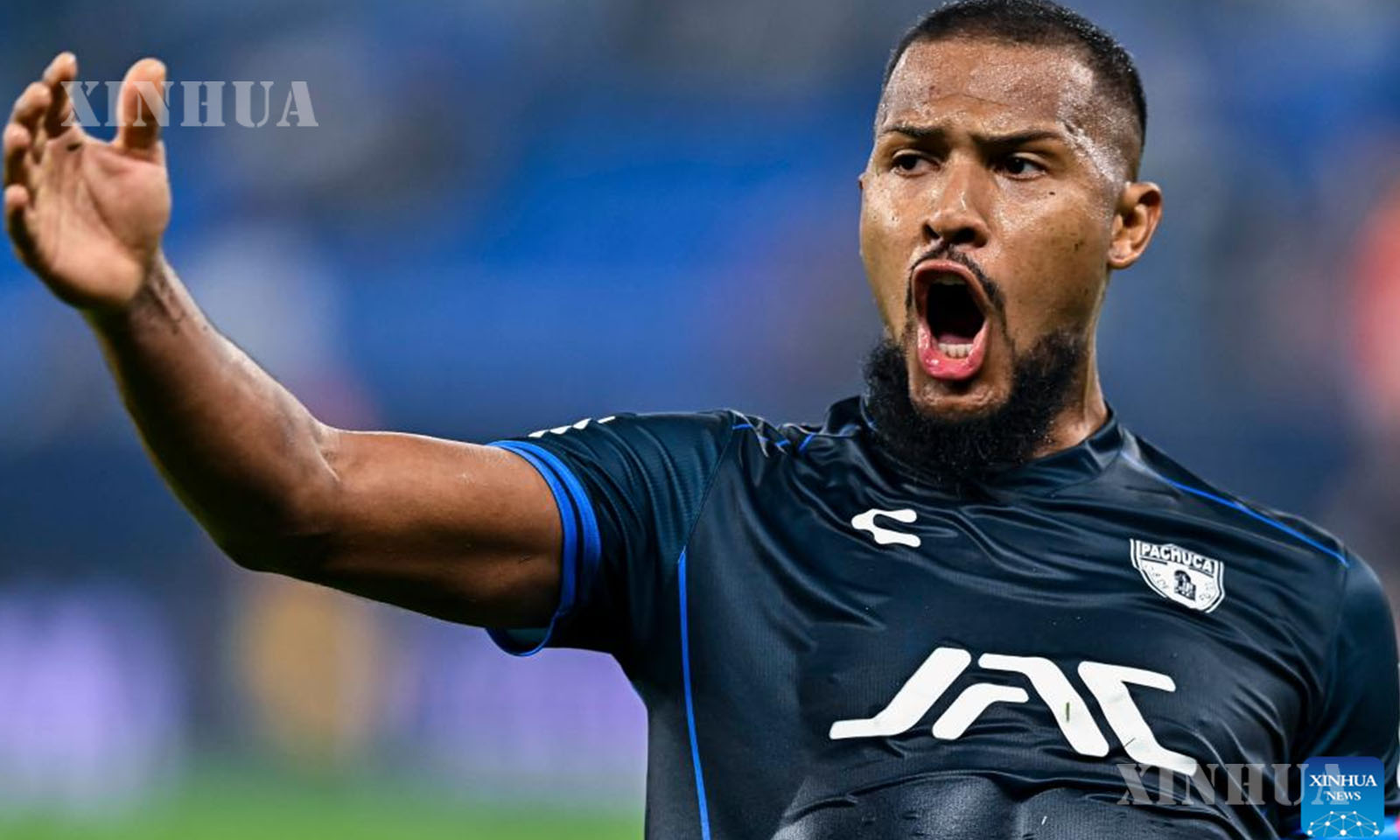 Salomon Rondon of CF Pachuca celebrates after scoring during the FIFA Intercontinental Cup match between Brazil’s Botafogo and Mexico’s CF Pachuca in Doha, Qatar on Dec. 11, 2024. (Photo by Nikku/Xinhua)