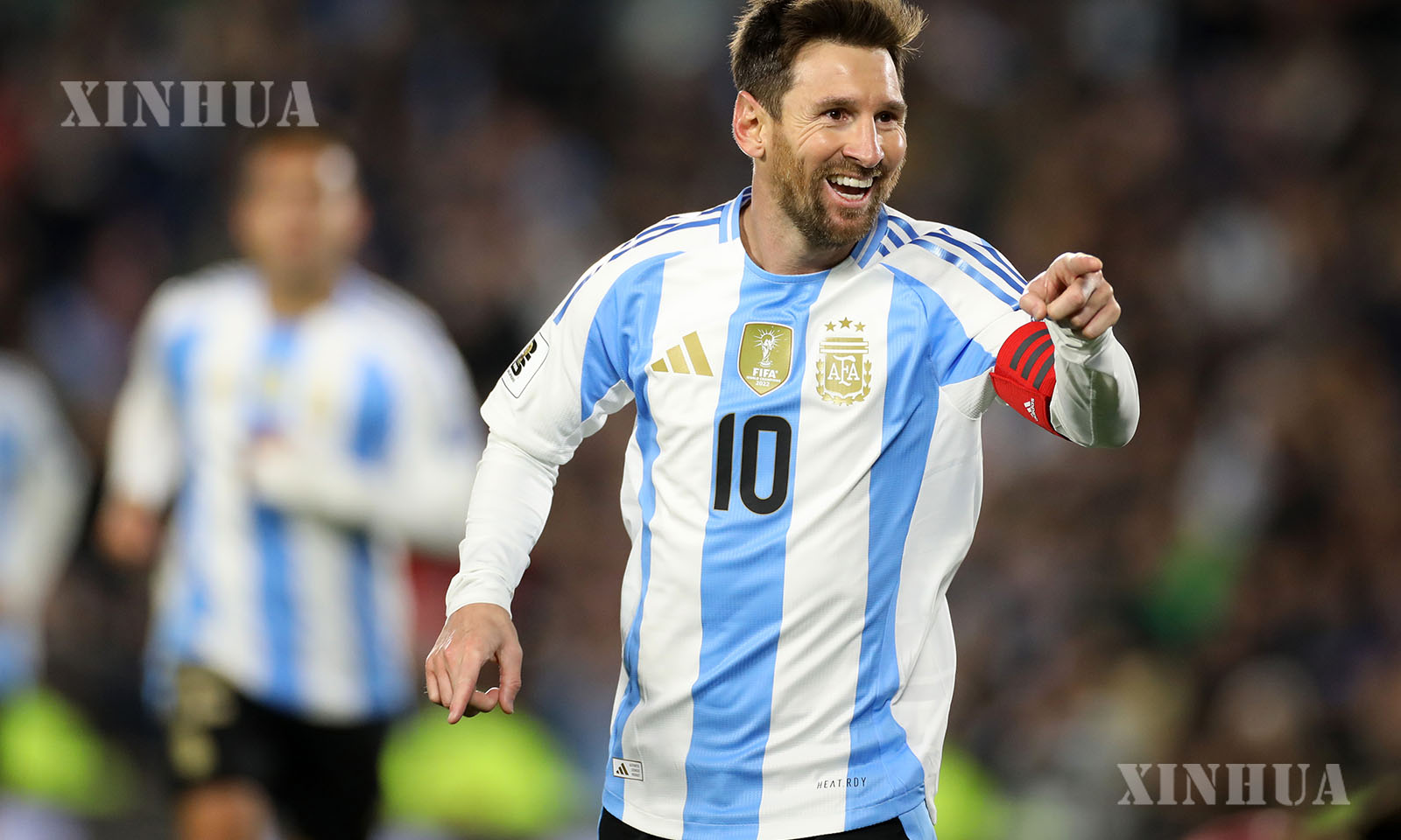 Lionel Messi of Argentina celebrates his goal during the 2026 FIFA World Cup CONMEBOL Qualifier football match between Argentina and Venezuela in Buenos Aires, Argentina, Sept. 4, 2025. (Photo by Martin Zabala/Xinhua)