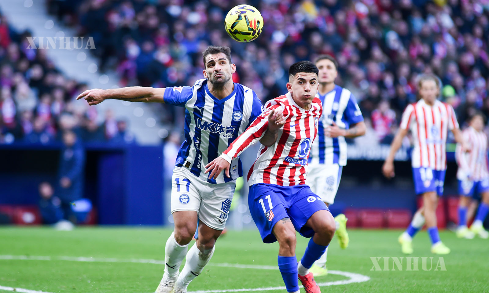 စပိန်နိုင်ငံ မက်ဒရစ်မြို့တွင် ၂၀၂၆ ခုနှစ် ဇန်နဝါရီ ၁၈ ရက်က အက်သလက်တီကို မက်ဒရစ်နှင့် ဒီပေါ်တီဗို အလာဗက်စ်အသင်းတို့ ယှဉ်ပြိုင်ကစားသည့် လာလီဂါဘောလုံးပွဲစဉ်တွင် အက်သလက်တီကိုအသင်းမှ အလက်ဇန်းဒါး ဆော်လော့ (ယာ) နှင့် အလာဗက်စ်အသင်းမှ နာဟူရယ်လ် တီနာဂလီယာတို့ ယှဉ်ပြိုင်ကစားနေစဉ် (ဆင်ဟွာ)