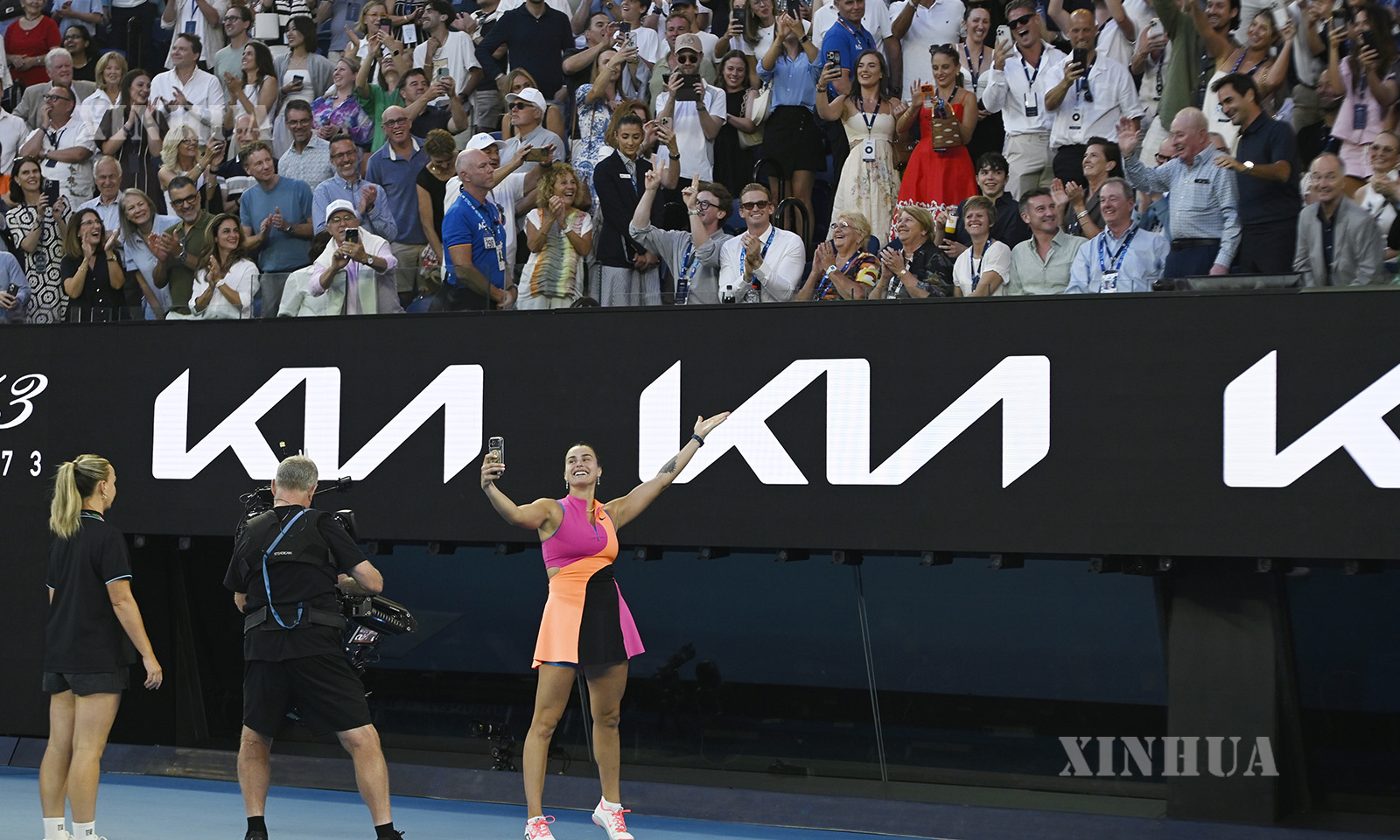 ဩစတြေးလျနိုင်ငံ မဲလ်ဘုန်းမြို့တွင် ၂၀၂၆ ခုနှစ် ဇန်နဝါရီ ၁၈ ရက်က ပြင်သစ်တင်းနစ်မယ် တီယန့်ဆိုအာ ရာကိုတိုမန်ဂါ ရာဂျာအိုနာနှင့် ယှဉ်ပြိုင်ခဲ့သည့် ဩစတြေးလျအိုးပင်း အမျိုးသမီးတစ်ဦးချင်း ပထမအဆင့် ပွဲစဉ်၌ ဘီလာရုစ်တင်းနစ်မယ် အရီနာ ဆာဘလန်ကာအား တွေ့ရစဉ် (ဆင်ဟွာ)