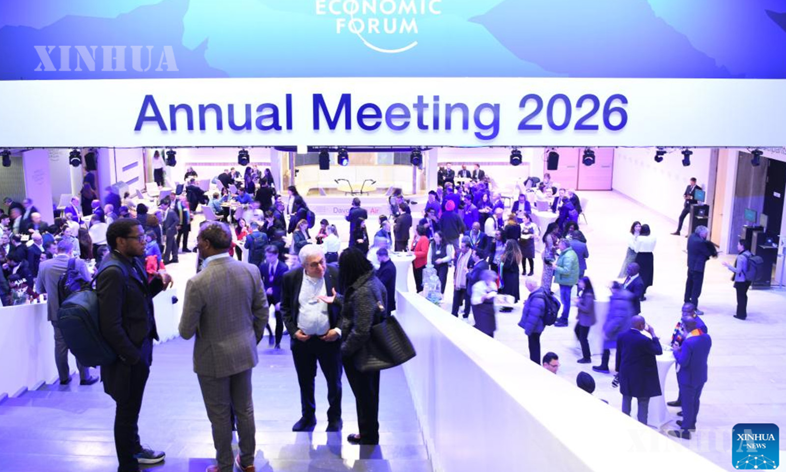 ဆွစ်ဇာလန်နိုင်ငံ ဒါဗို့စ်မြို့၌ ကျင်းပသည့် ကမ္ဘာ့စီးပွားရေးဖိုရမ် (WEF) ၏ ၂၀၂၆ ခုနှစ် နှစ်ပတ်လည်အစည်းအဝေး၌ ကြိုဆိုဧည့်ခံပွဲ တက်ရောက်လာကြသူများကို ၂၀၂၆ ခုနှစ် ဇန်နဝါရီ ၁၉ ရက်က တွေ့ရစဉ် (ဆင်ဟွာ)
