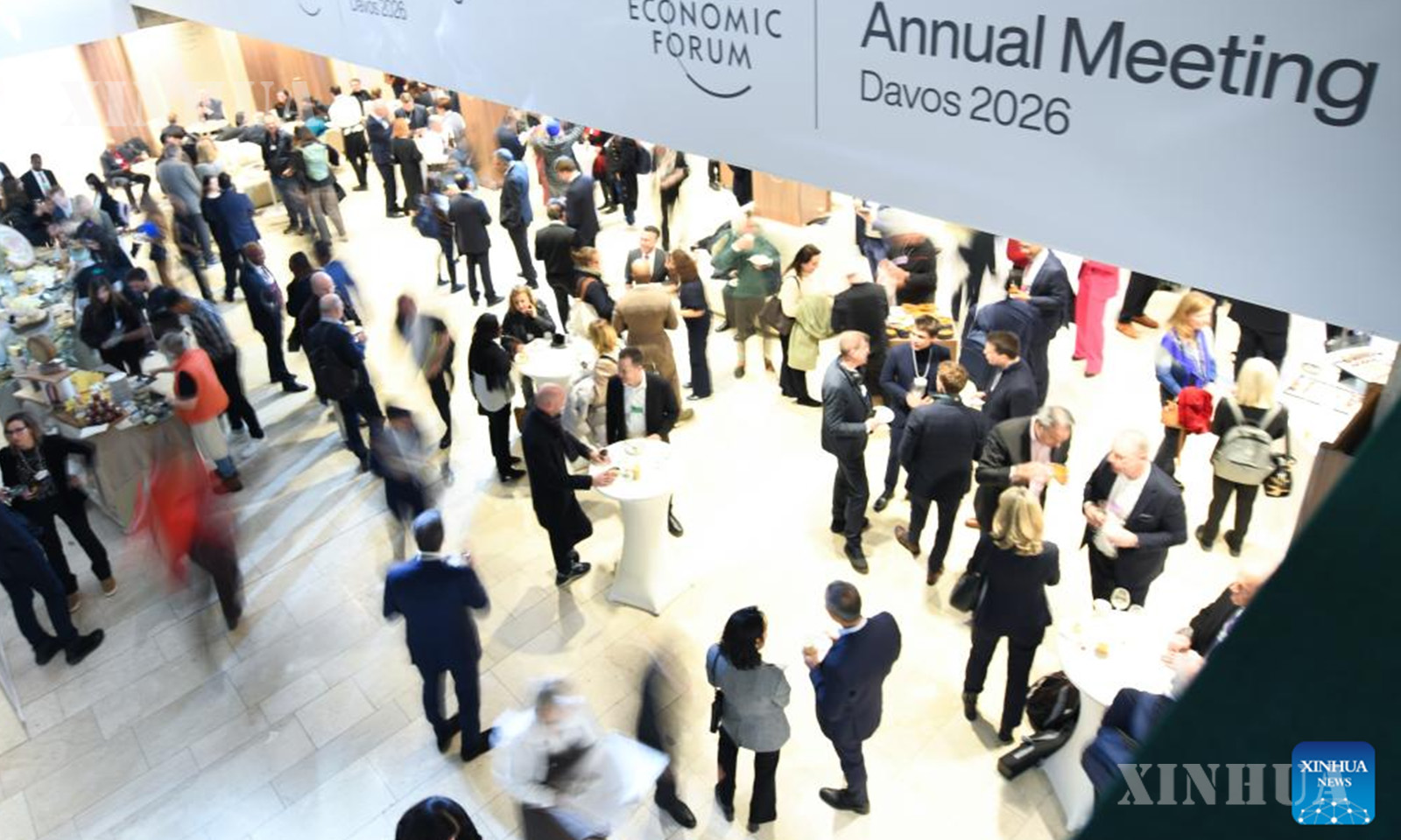 People attend the welcome reception at the 2026 annual meeting of the World Economic Forum (WEF) in Davos, Switzerland, Jan. 19, 2026. (Xinhua/Lian Yi)
