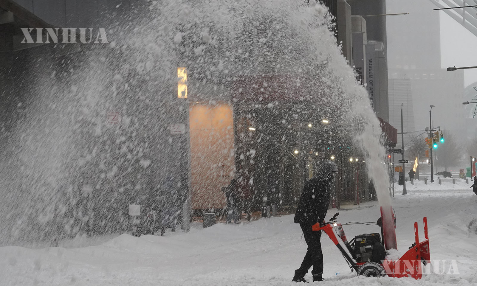 အမေရိကန်နိုင်ငံ နယူးယောက်မြို့ရှိ လမ်းမတစ်နေရာမှ ဆီးနှင်းများ ဖယ်ရှားနေသည့် အမျိုးသားတစ်ဦးကို ၂၀၂၆ ခုနှစ် ဇန်နဝါရီ ၂၅ ရက်က တွေ့ရစဉ် (ဆင်ဟွာ)